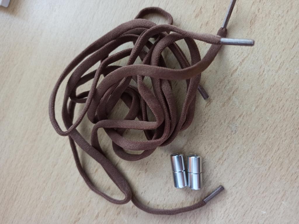 Lacci elastici con punte. I lacci si stanno allungando. Dopo aver allacciato i lacci nelle scarpe, misura una lunghezza comoda del laccio, metti la punta sul laccio e fissalo con un nodo. Intrecci le estremità l'una nell'altra e non devi slacciare i lacci quando indossi le scarpe.