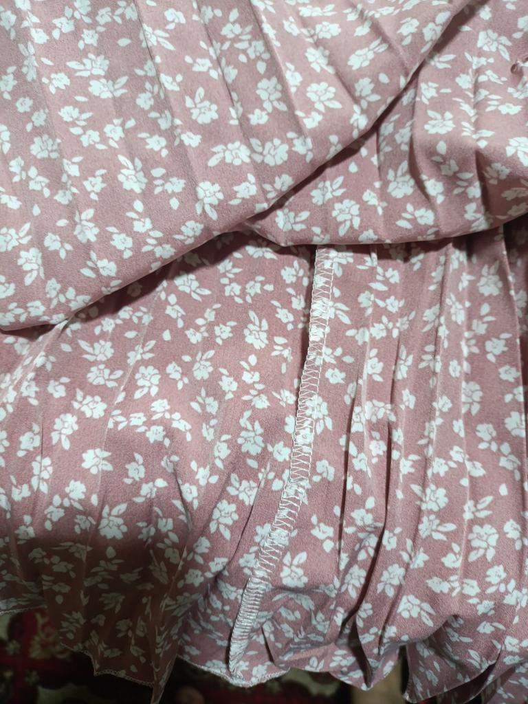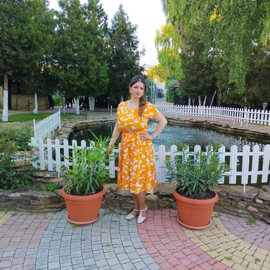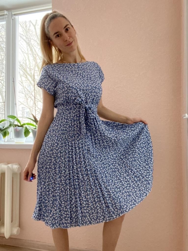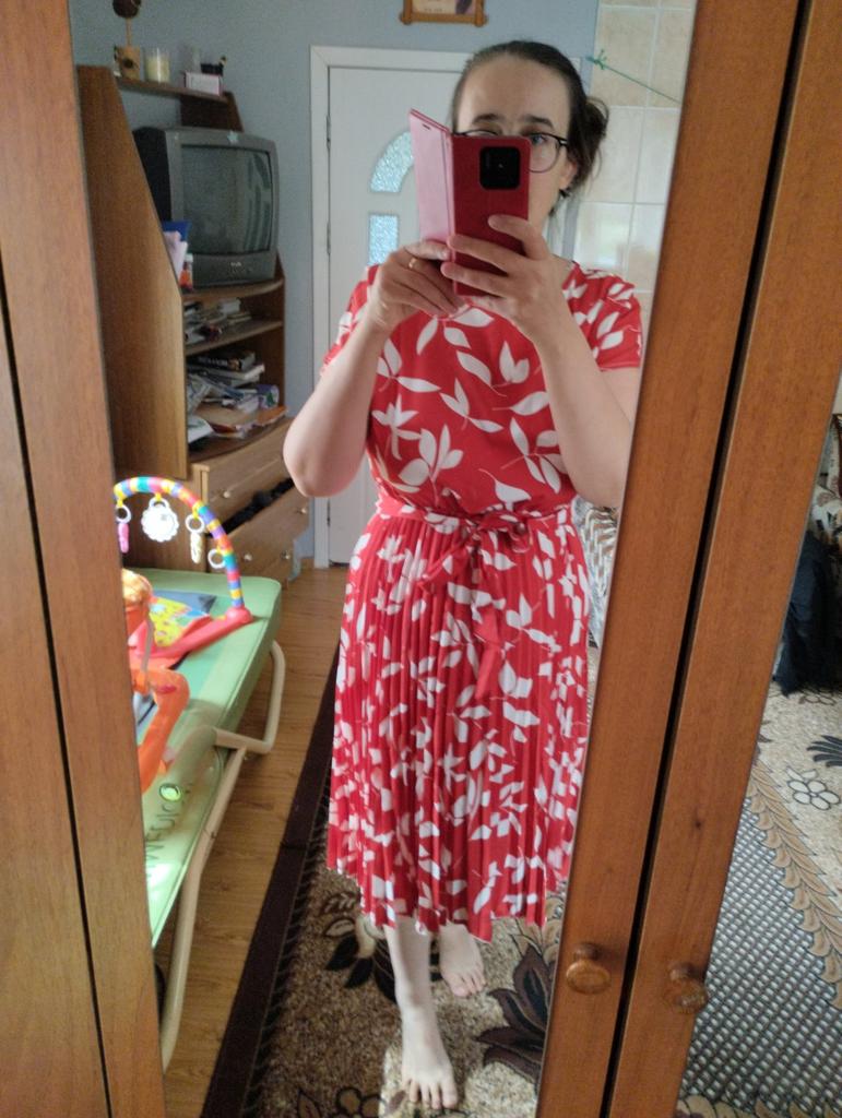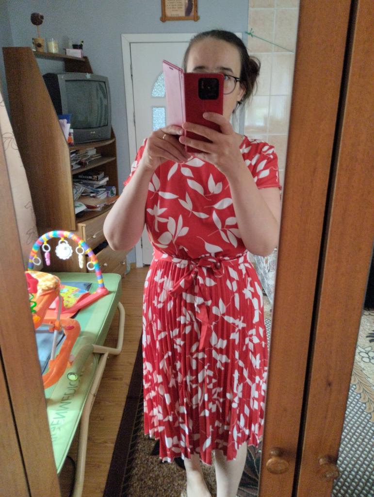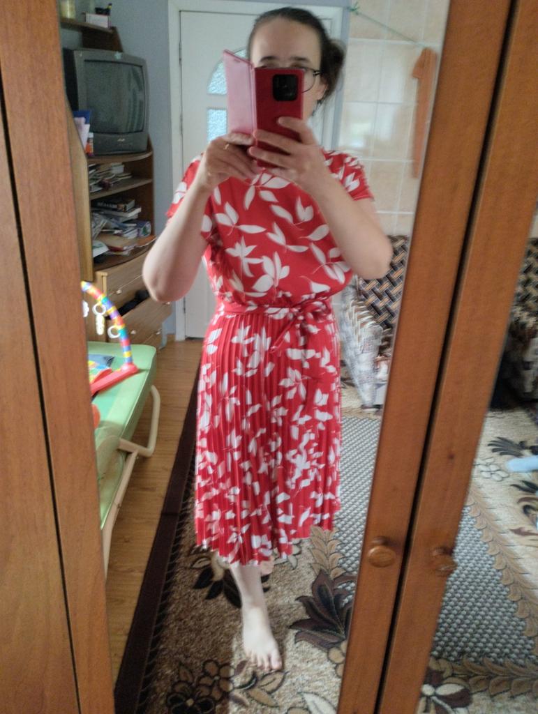 L'abito è realizzato in materiale sintetico sottile, ma piacevole al tatto, la gonna dell'abito è arrivata ben sgualcita., durante la stiratura, la "piega" ha cominciato ad appianarsi, cioè col tempo, capisco, scomparirà. Danno! Ecco perché tolgo una stella. Un vestito per tutti i giorni. La mia taglia è 48-50, ho ordinato la XXL ed ero preoccupata che fosse grande, ma grazie alle recensioni non ho perso.