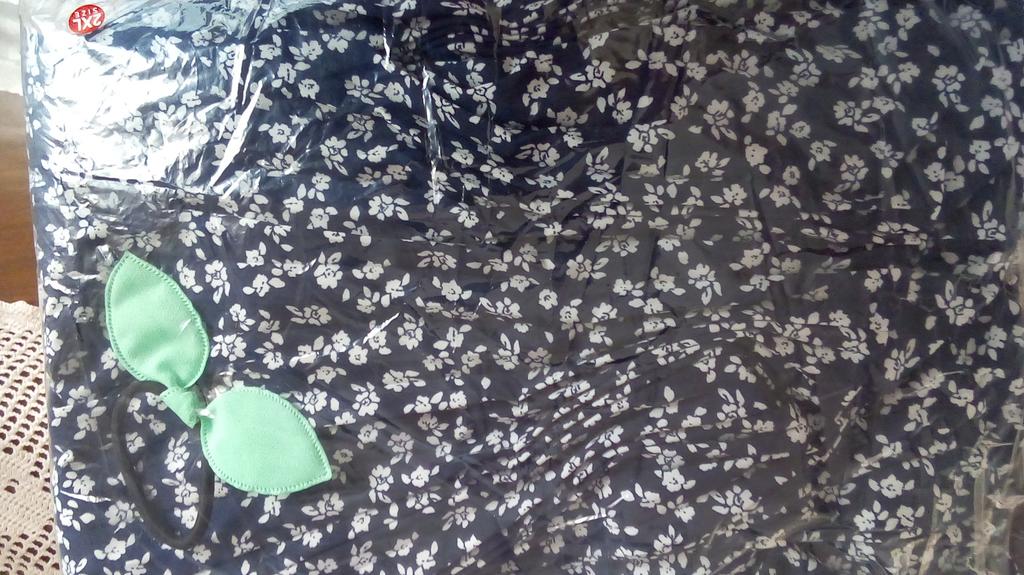 Pagami e basta, grazie! Anche se a quanto pare è stato cucito nel seminterrato, non c'è una sola etichetta, nemmeno l'etichetta della taglia. Veste bene, non mi è piaciuto che le foglie bianche siano bianco sporco.