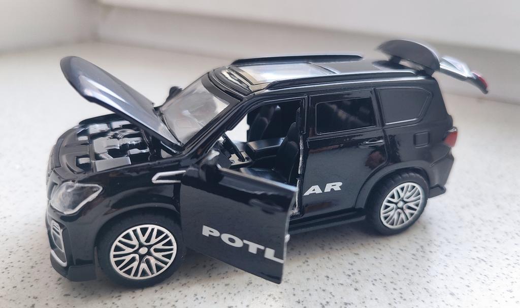 L'auto è bella, è arrivata tutta intera, e le portiere, il cofano e il bagagliaio, tutto si apre) il bambino è soddisfatto!