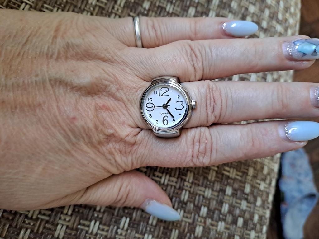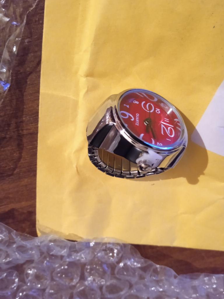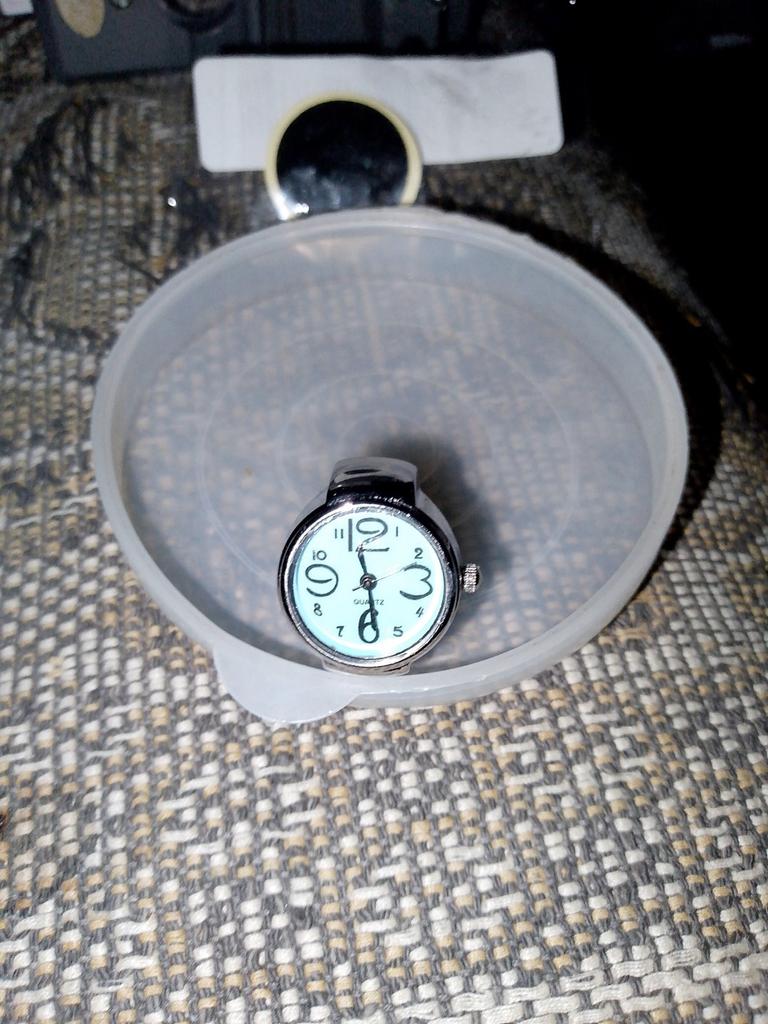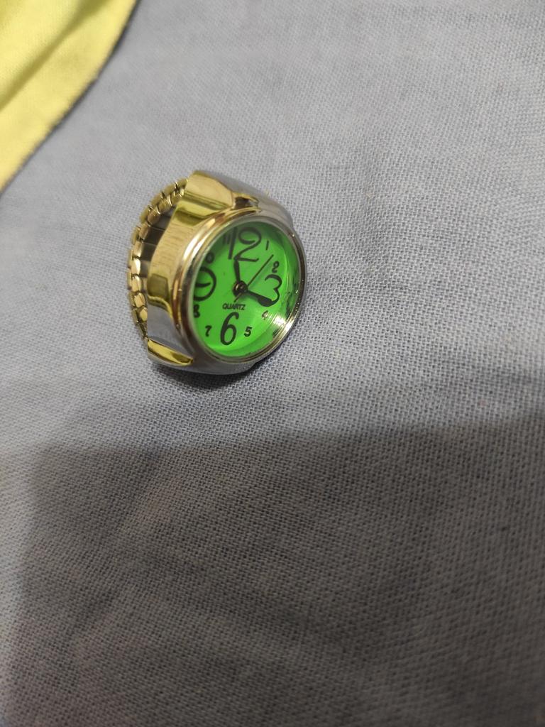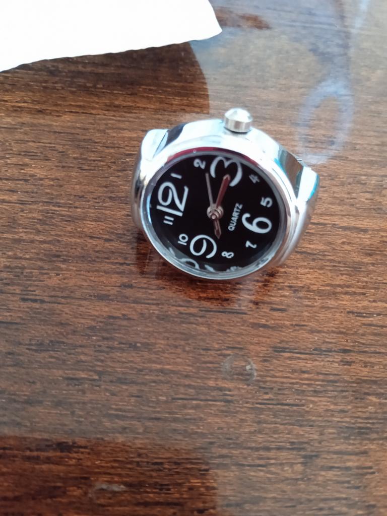 L'anello è ottimo, l'orologio funziona, sta bene su qualsiasi dito