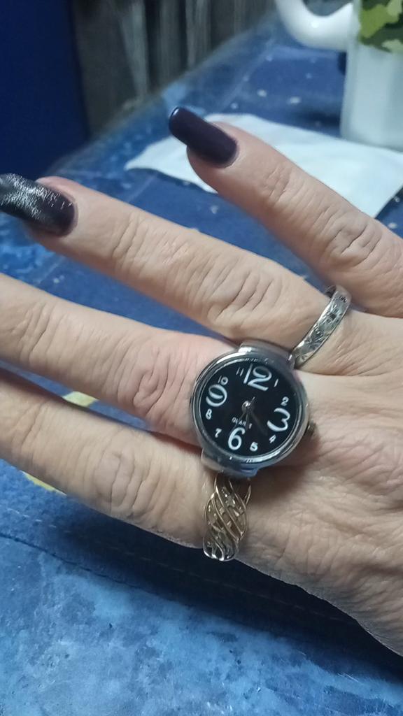 L'orologio-anello è molto bello. Sembra originale. L'orologio funziona bene. Grazie ❤️