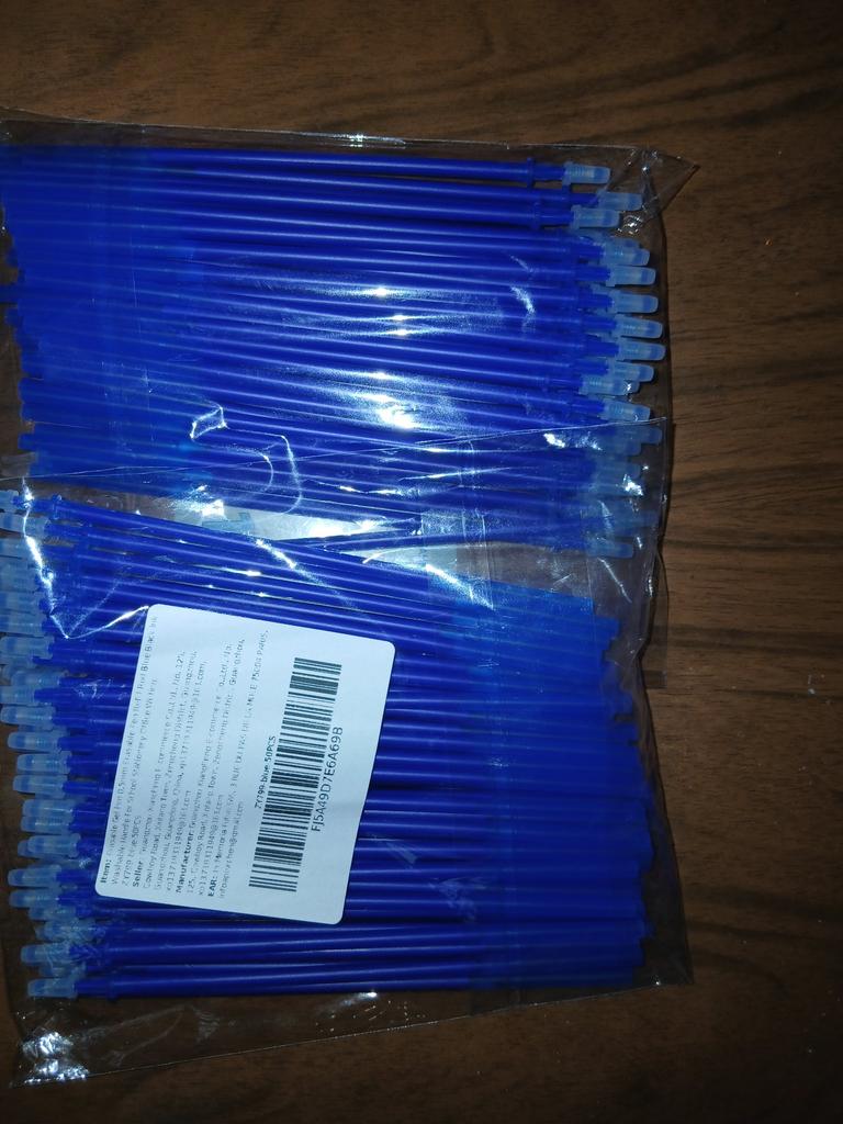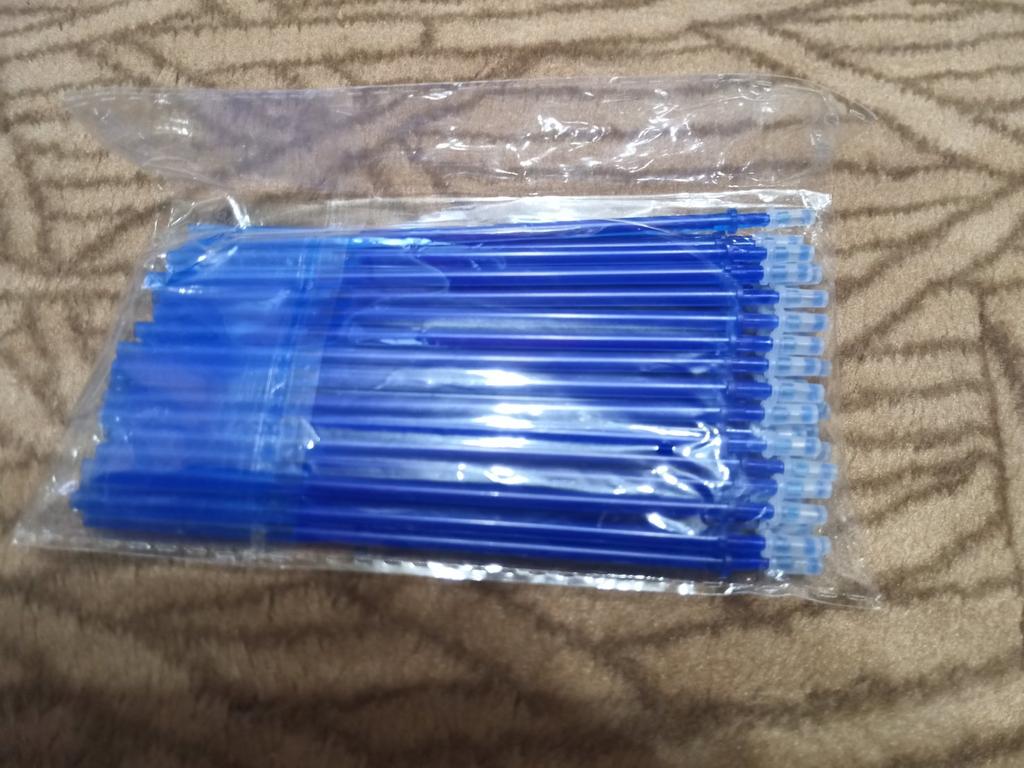 Nella confezione ci sono 50 pezzi, le penne scrivono molto bene! Abbiamo aspettato circa un mese. Grazie al venditore! Raccomando!