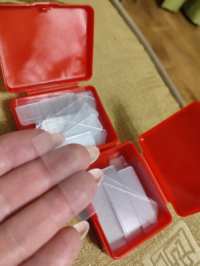 Li prendo per le parti piccole che cadono facilmente. Un po' difficile rimuovere la pellicola. Se non ci sono unghie.