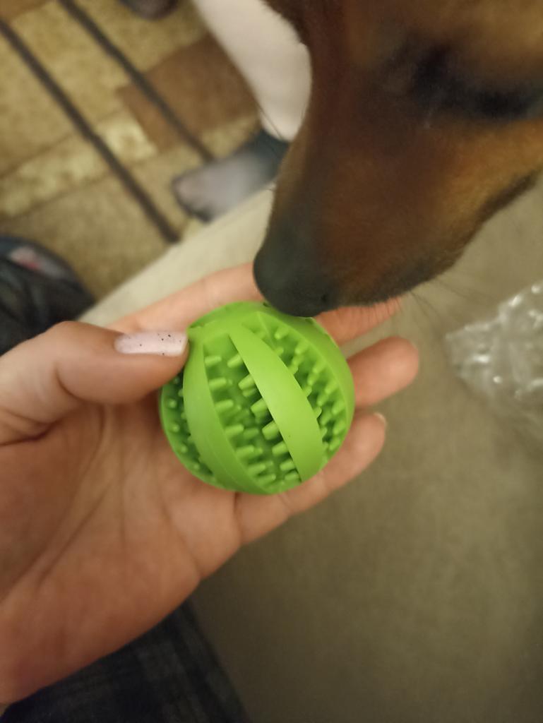 Tutto è come nella descrizione. Inodore. La dimensione della palla è piccola, per cani di piccola taglia.