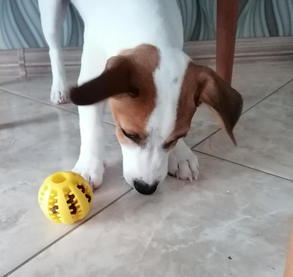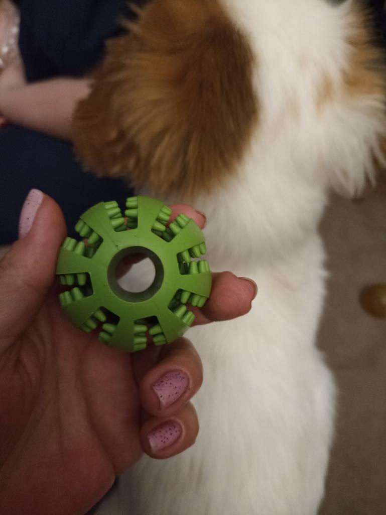 Il mio cane lo adora, quando viene lasciato solo per un po' gioca e mangia i dolcetti e allo stesso tempo si diverte. Con la palla...