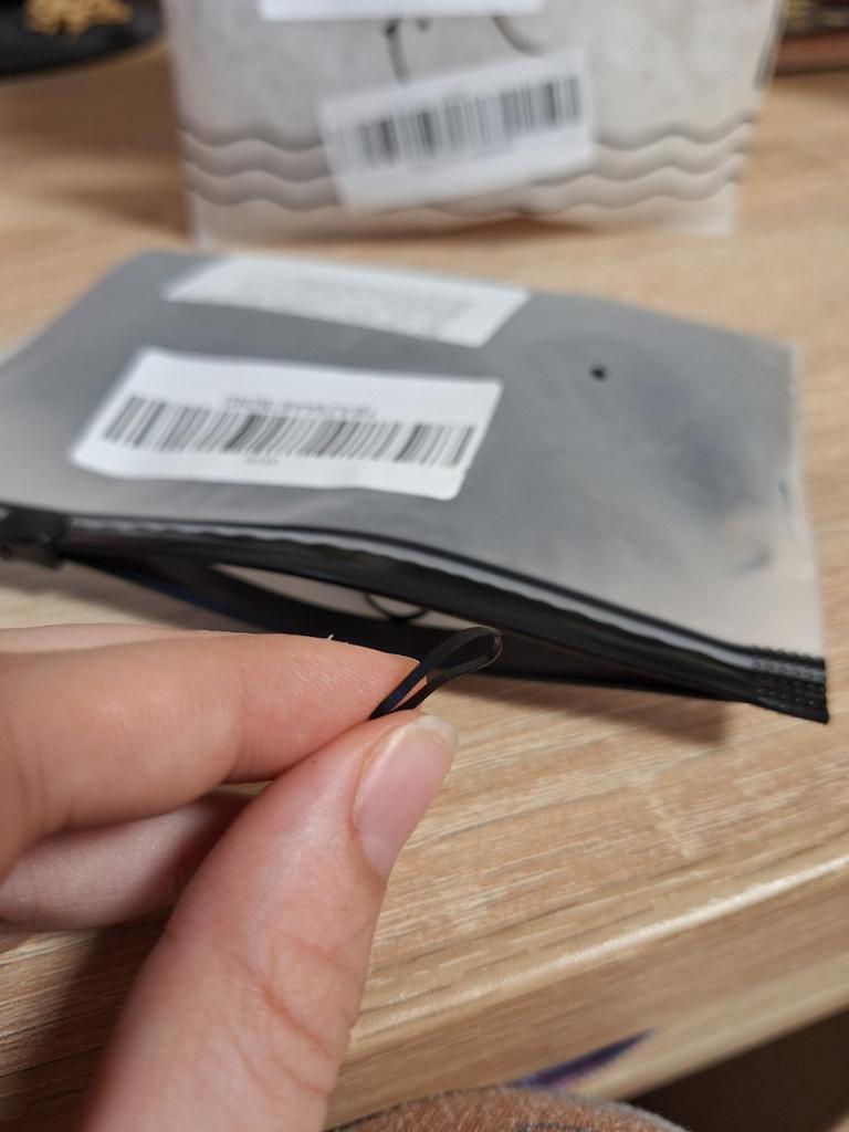 Sono arrivati confezionati in una bustina resistente con chiusura, ma gli elastici stessi sono sottili.