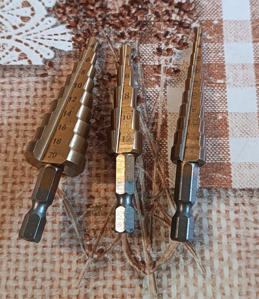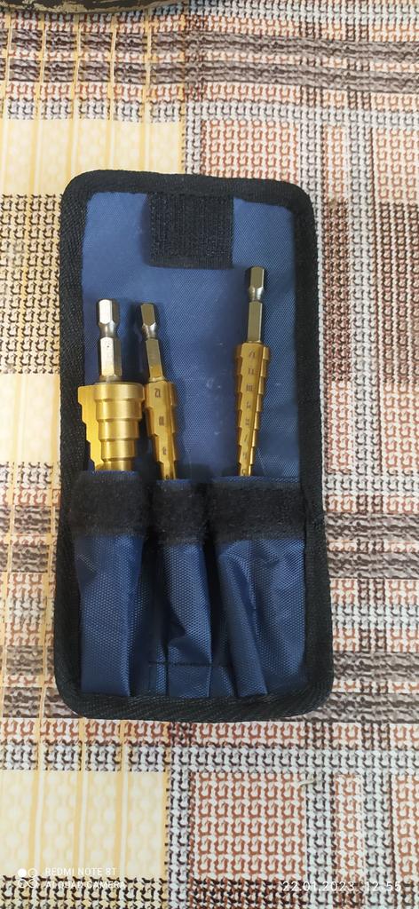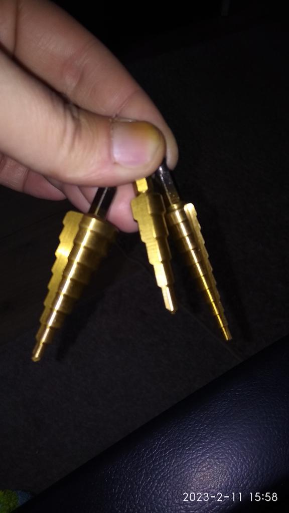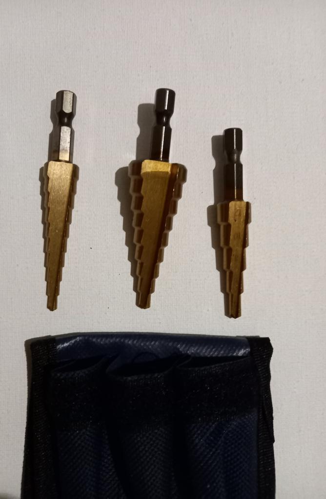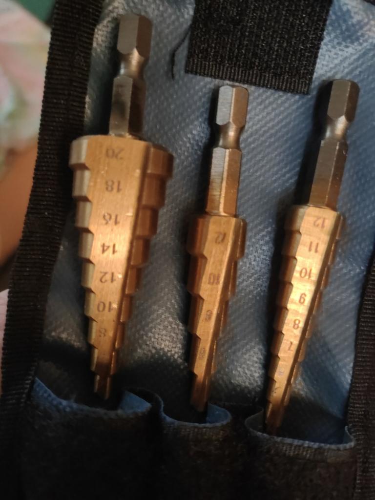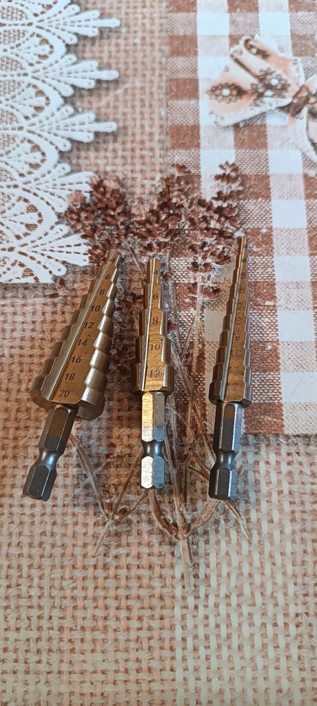 🛍️strumenti per la perforazione🛍️ Valutazione: ⭐⭐⭐⭐⭐ ✨Sono realizzati in acciaio di alta qualità. ✨Gli ideali da utilizzare per tagliare fori in una varietà di materiali ✨Puoi forare acciaio, ottone, legno, plastica, ecc. ✨Il contenuto del prodotto è di 3 parti ✨È facile da usare. ✨Le dimensioni dei pezzi sono: 3-12 mm 4-12 mm 4-20 mm ✨Grazie mille ad Aloisia per avermi inviato il pacco! Altamente consigliato per l'acquisto🛍️
