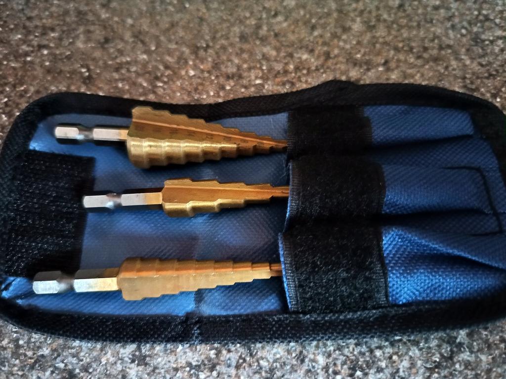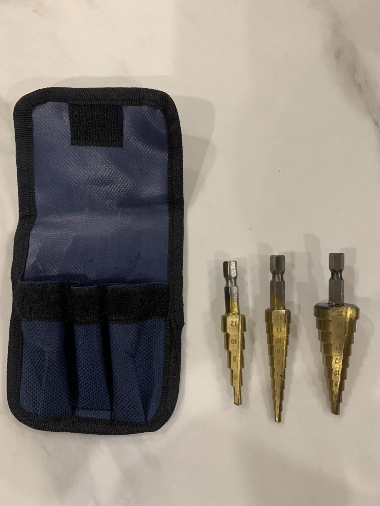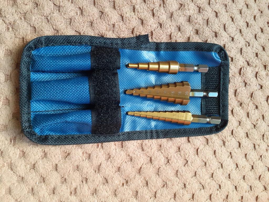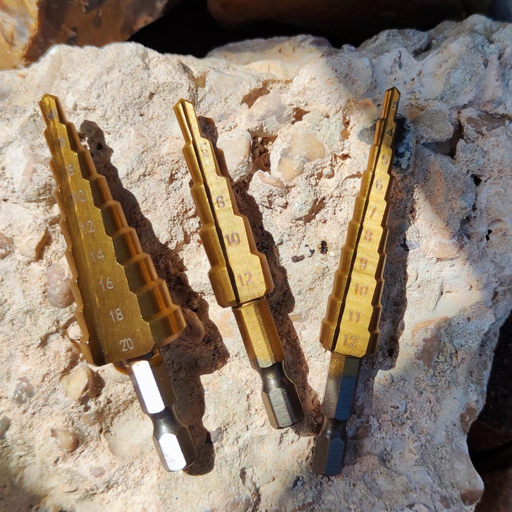 🛍️strumenti per la perforazione🛍️ Valutazione: ⭐⭐⭐⭐⭐ ✨Sono realizzati in acciaio di alta qualità. ✨Gli ideali da utilizzare per tagliare fori in una varietà di materiali ✨Puoi forare acciaio, ottone, legno, plastica, ecc. ✨Il contenuto del prodotto è di 3 parti ✨È facile da usare. ✨Le dimensioni dei pezzi sono: 3-12 mm 4-12 mm 4-20 mm ✨Grazie mille ad Aloisia per avermi inviato il pacco! Altamente consigliato per l'acquisto🛍️