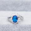 Anello con zirconi blu naturali di Diana in blu reale naturale. Anello di alta moda con tesori colorati intarsiati da donna