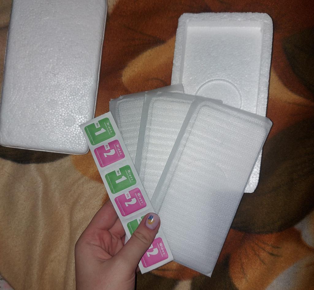 Confezionato in una scatola di gommapiuma. Salviettine incluse. Raccomando.