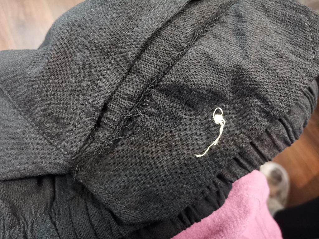 Cucito bene, il tessuto è sottile, giusto per l'estate. Soddisfatto del prodotto. Grazie.