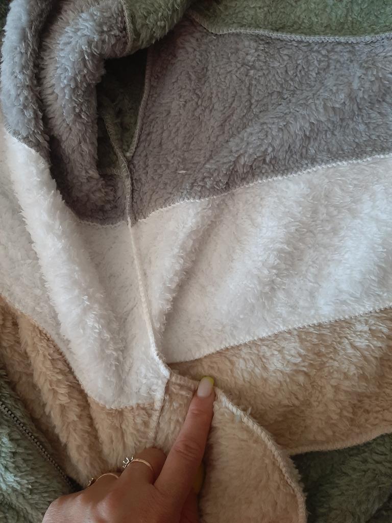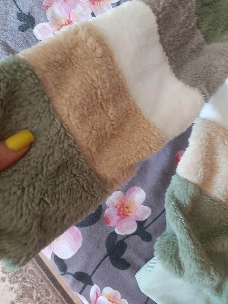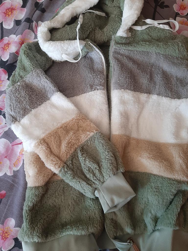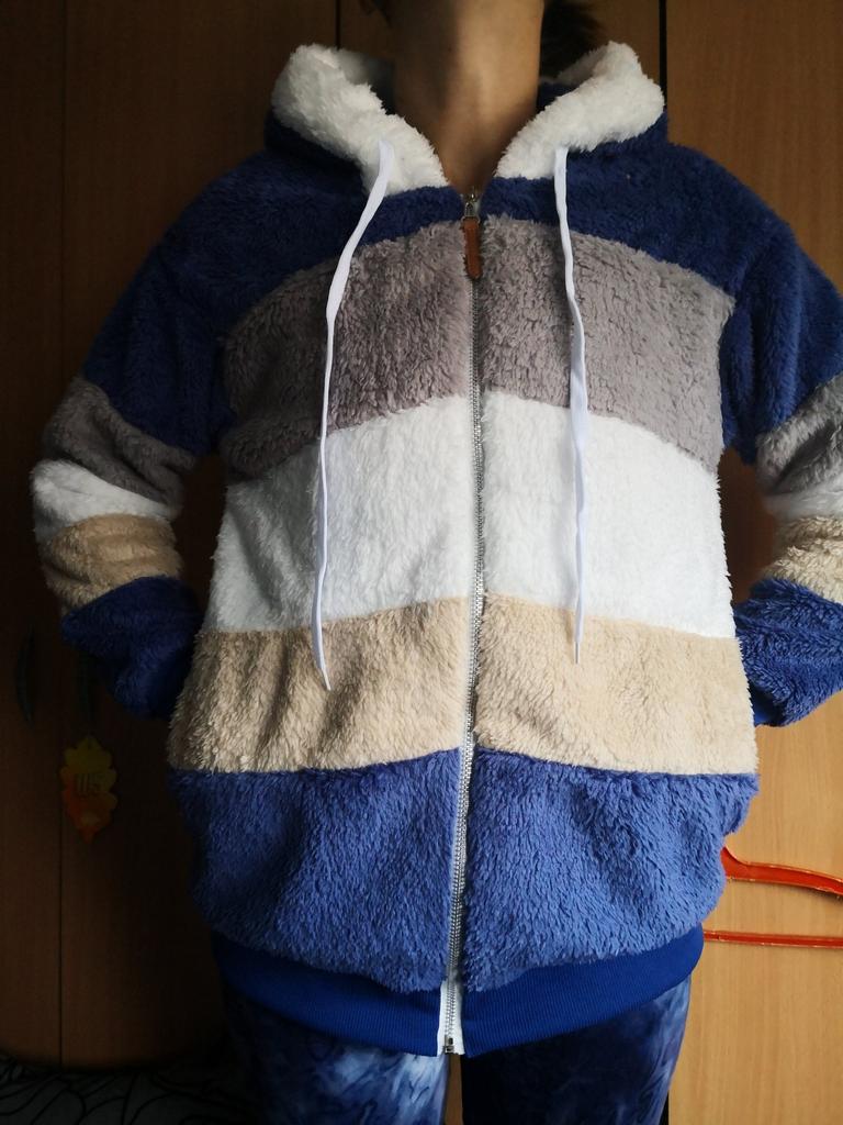 Anche il colore di questa felpa corrisponde all'immagine (ho preso la prima nella taglia 4X, quella verde), la pelliccia non è così fitta come mostrato, ma è abbastanza calda e morbida, per la 50-52 ho preso la 2x, è giusta, in lunghezza copre il sedere. La confezione è buona. Grazie al venditore premuroso e al team joom per la consegna rapida - 18 giorni
