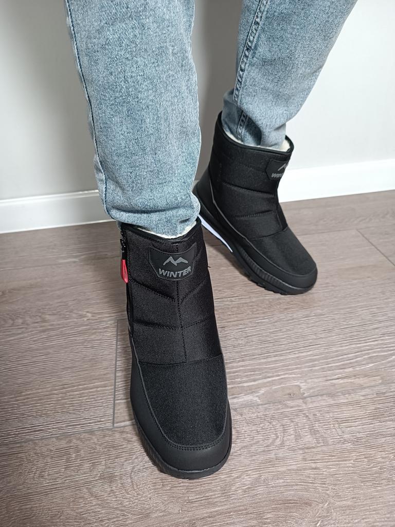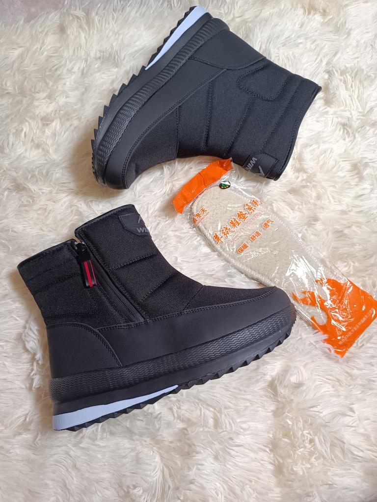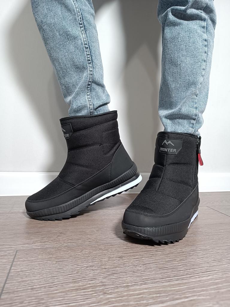 Stivali da neve antiscivolo con cerniera casual ispessita Scarpe da neve sportive impermeabili nere da uomo calde di peluche Scarpe da uomo spesse