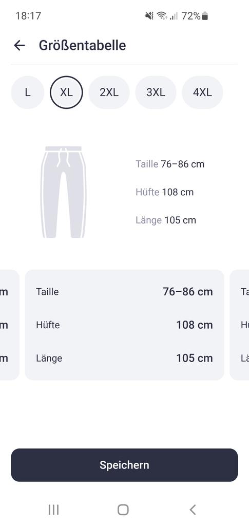 Pantaloni della tuta fantastici. Il tessuto è spesso. Indosso la taglia 54-56, la 3XL veste perfettamente.