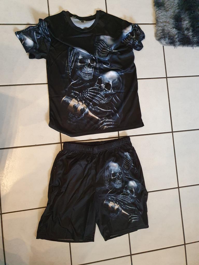 T-shirt da uomo oversize con stampa di teschi Completi di tute da uomo Top Pantaloncini High Street 2 pezzi Sport e tempo libero Abito estivo da uomo