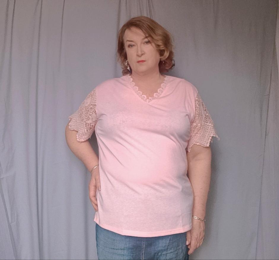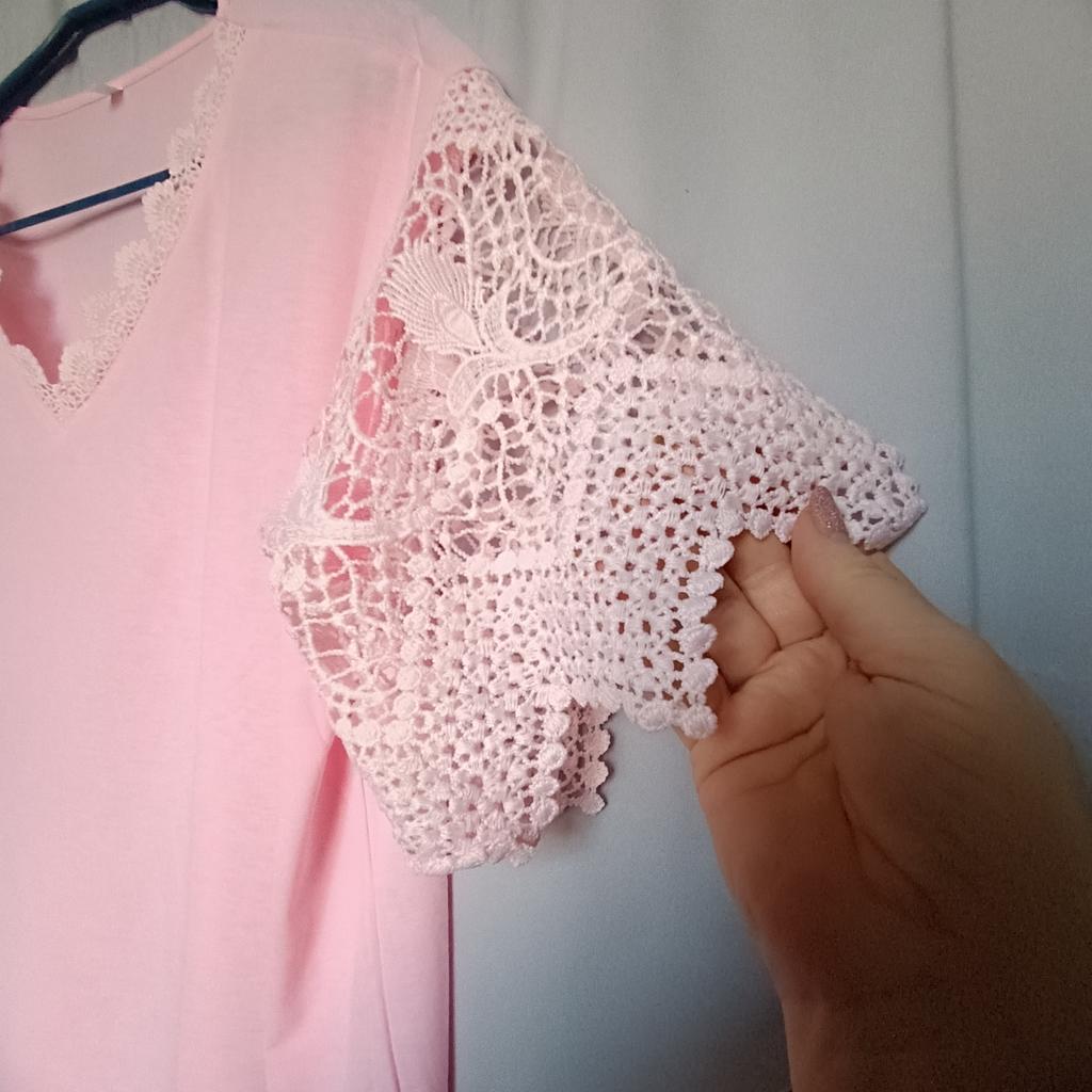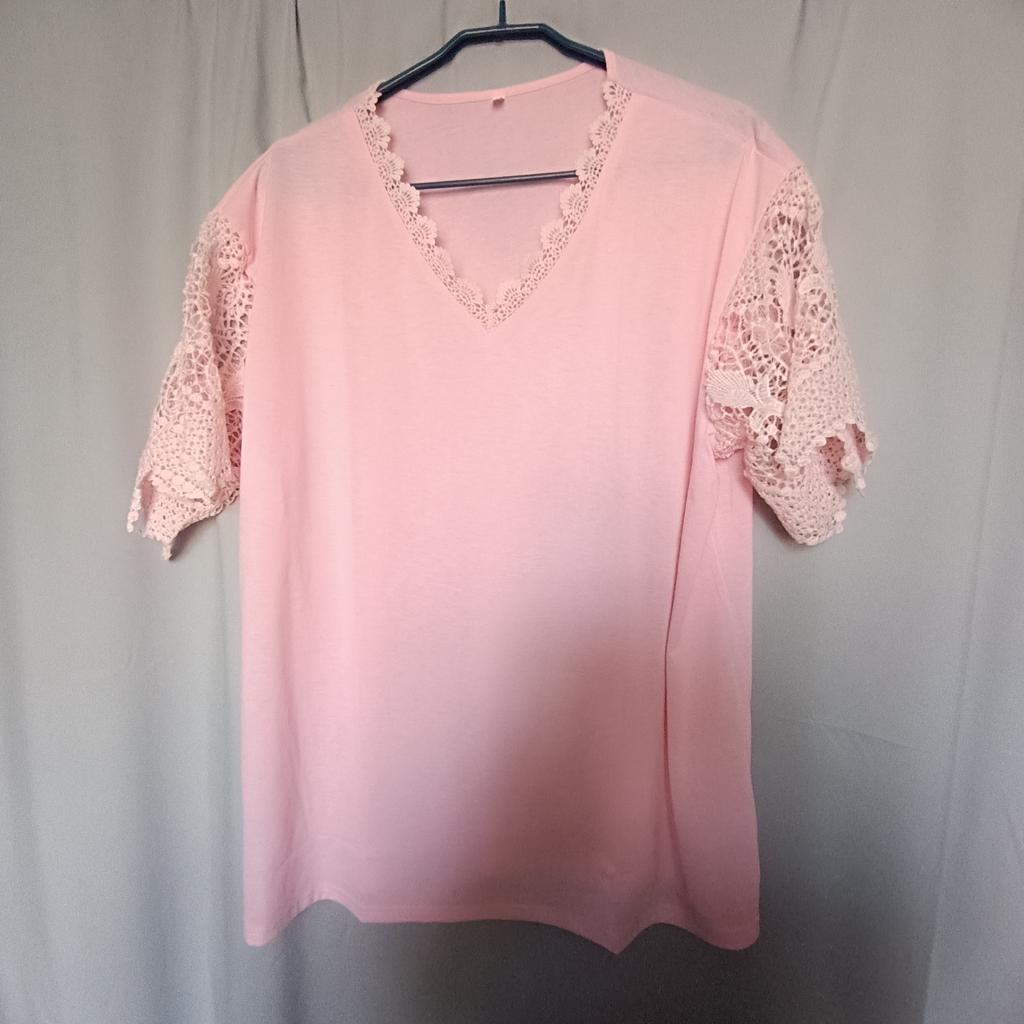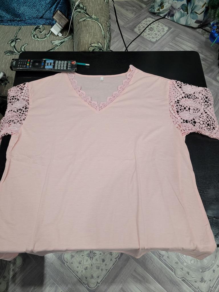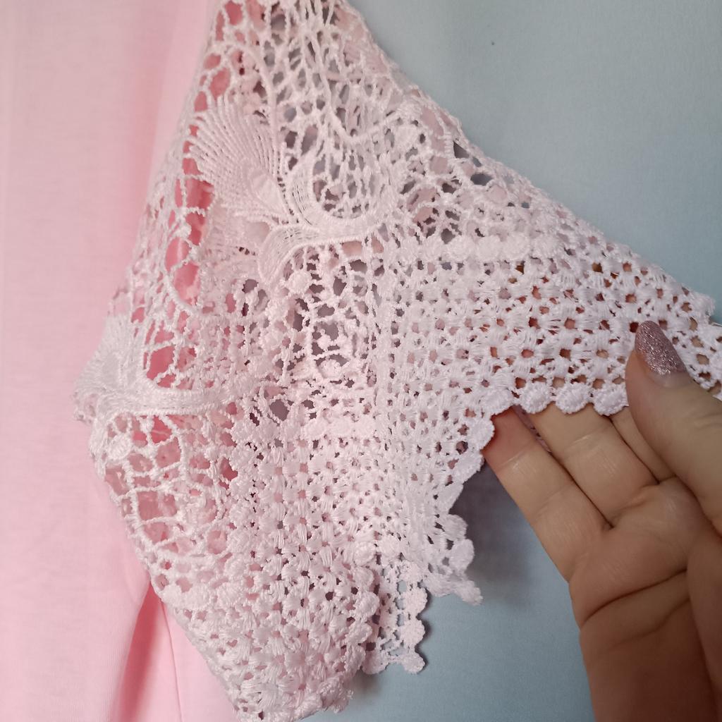 Bel pizzo sulle maniche, adorabile per l'estate, anche il buon prezzo, il materiale è bello e morbido