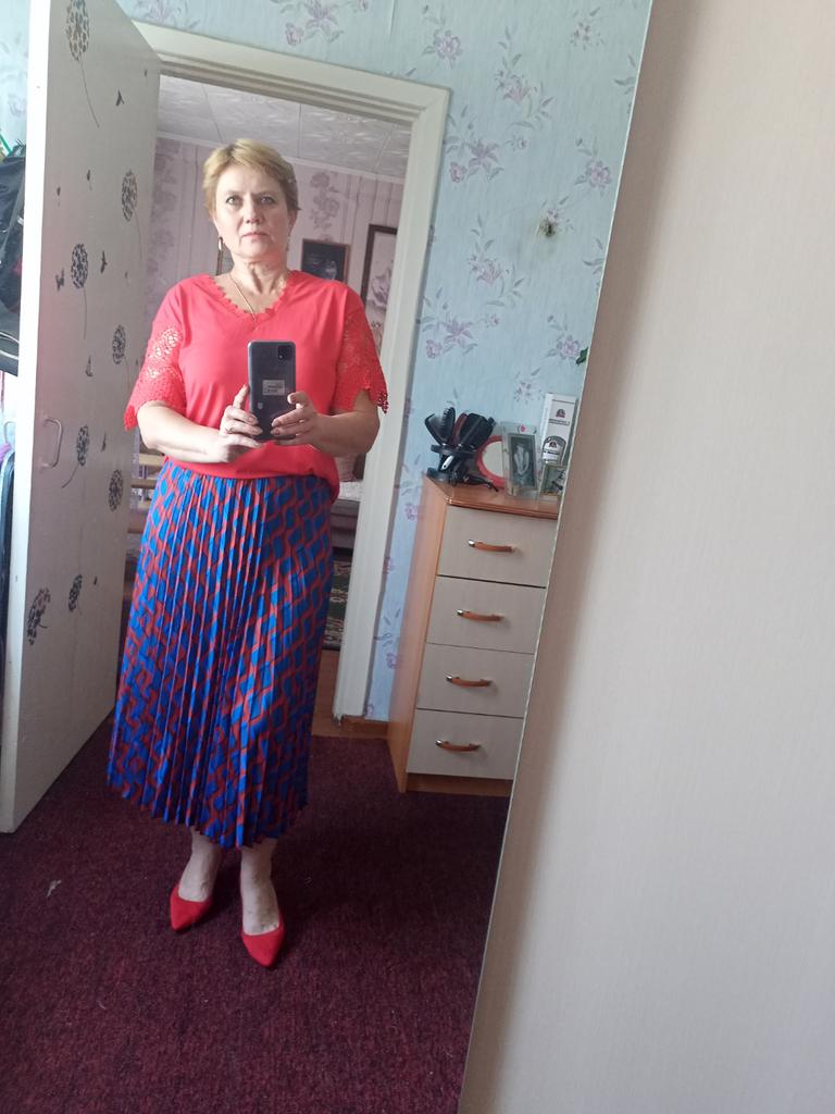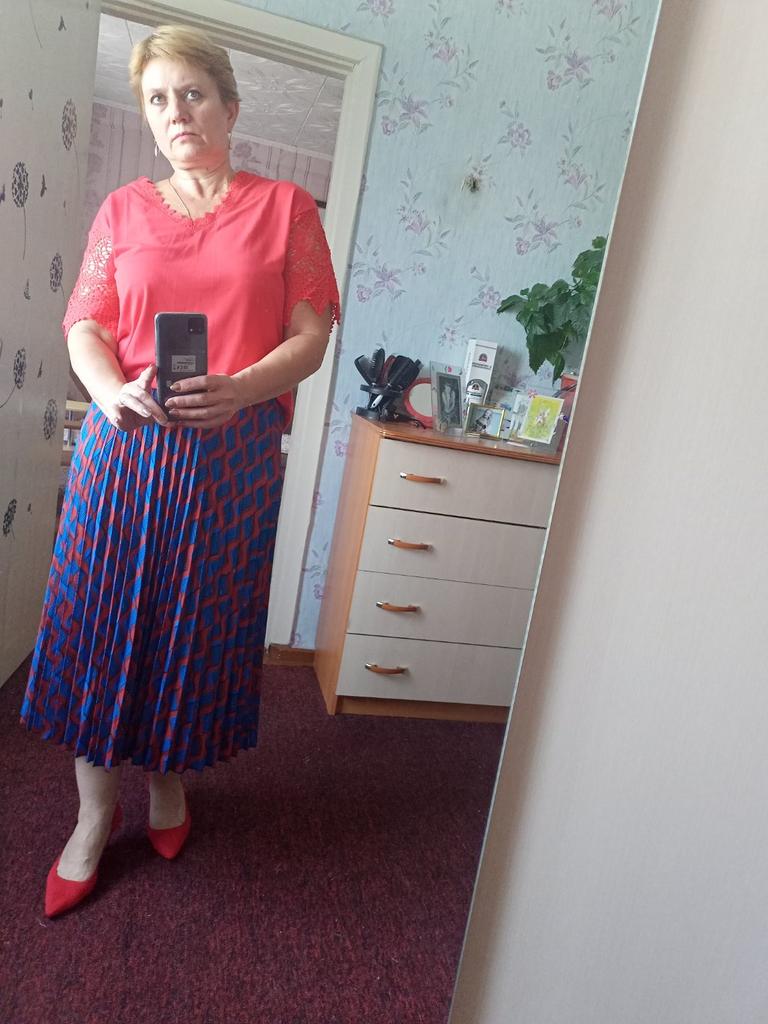 La camicetta è ottima, l'ho presa rossa, il colore è davvero brillante, la taglia è XL per i miei parametri 100-86-105, è gratis, la camicetta mi piace