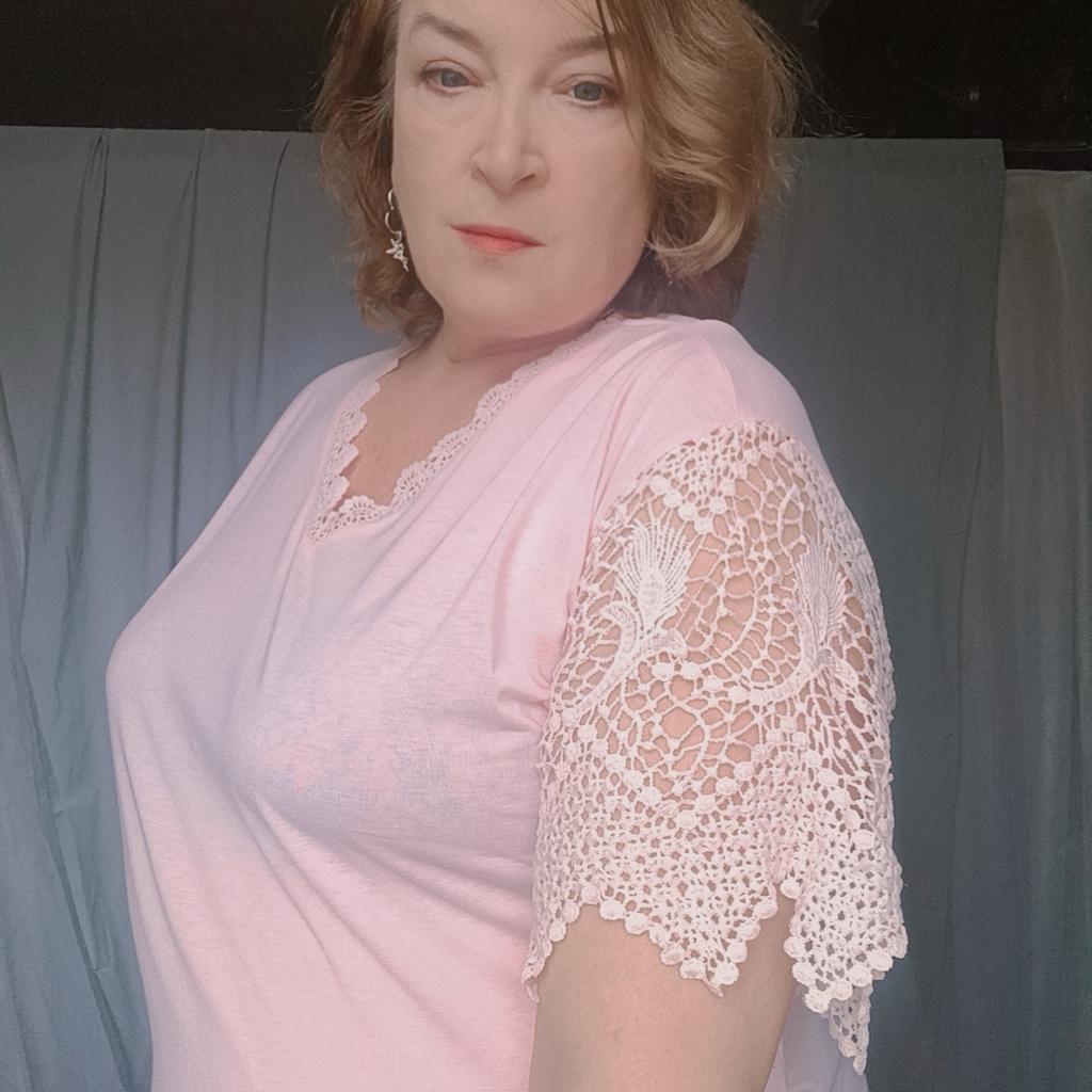 Bella maglietta, maniche in pizzo molto belle, è un po' larga ma si può sistemare.
