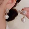 Orecchini Nodo Perla Zirconia Cubica Moda Corea per Ragazze Design Statement Dolci Orecchini a Lobo Estivi Gioielli di Lusso per Matrimonio