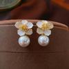 Orecchini di perle con fiori in stile coreano dolce dichiarazione per le donne Micro pavimenta orecchini con zirconi cubici gioielli di moda di design