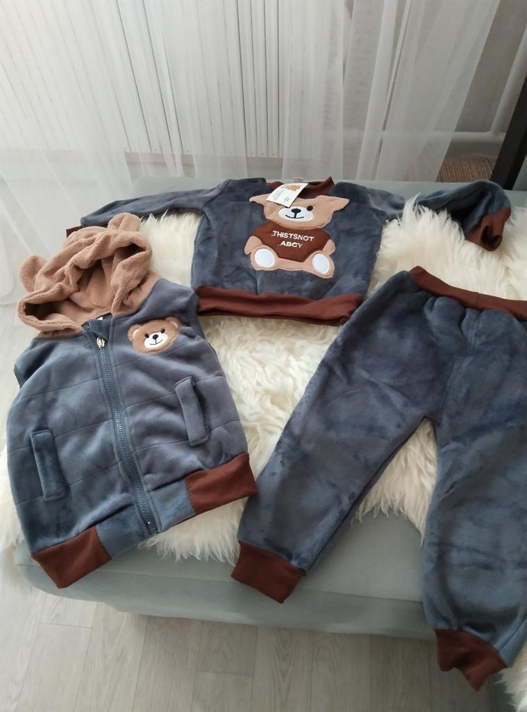 Autunno Inverno Neonati maschi Set di vestiti in pile spesso Cartoon Bear Giacca gilet pantaloni 3 pezzi tuta sportiva in cotone per ragazze abiti caldi