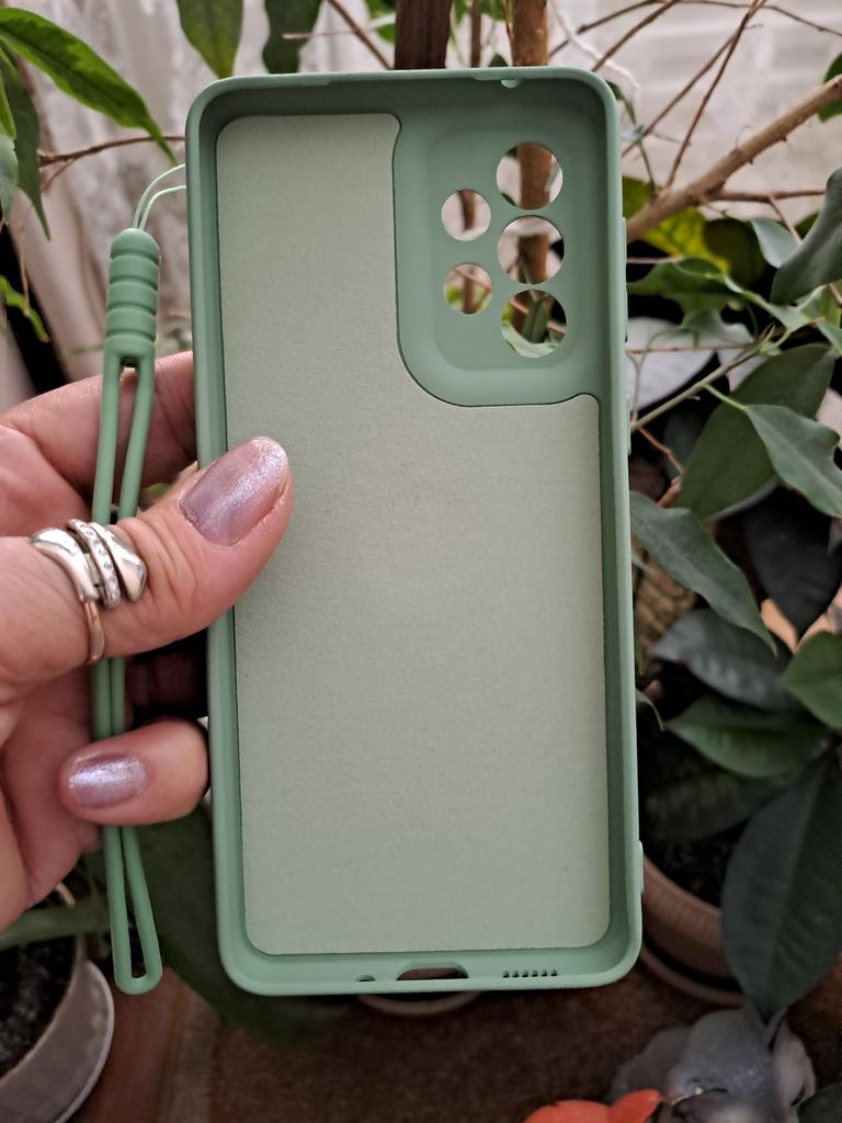 Piacevole al tatto, è presente un anello porta e una corda in silicone Si adatta perfettamente al telefono Anche la fotocamera è protetta Molto soddisfatto