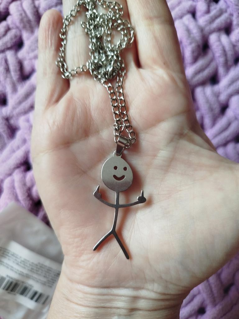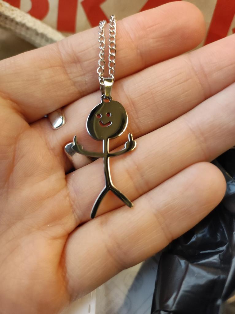Collana fantastica con ciondolo 😍 Ciondolo umoristico, per adolescenti 😅 La catena è molto potente, spessa. Il ciondolo stesso è realizzato con qualità 👍 Il prezzo a maggio 2025 era - 1₽ Mi raccomando ✔️