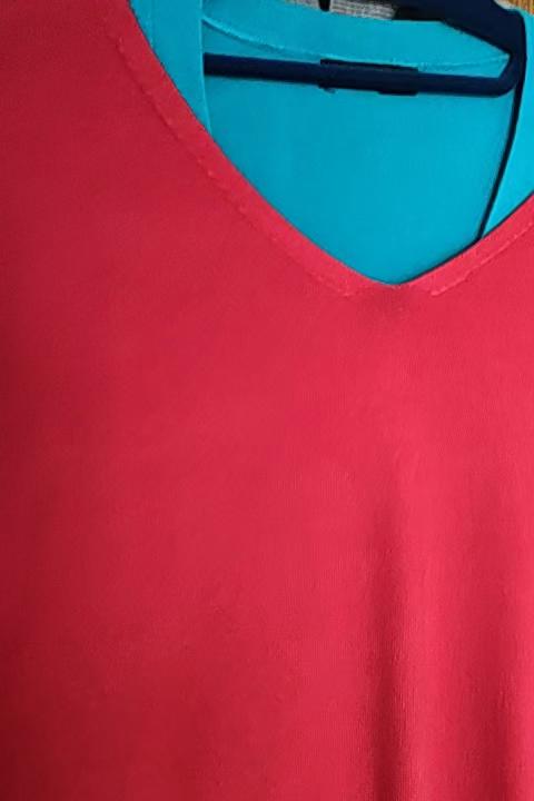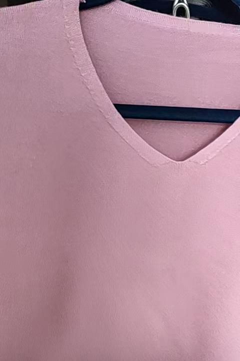 La camicetta è di buona qualità, confezionata in fabbrica, sottile, i fili non sporgono, grazie a tutti. Il colore è rosa intenso.