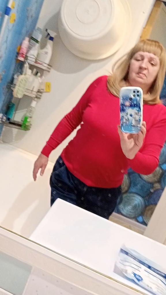 Il tessuto è piacevole al tatto, maglia morbida. Per la taglia 52-54 ho preso la xxxl, veste, non attillata, ma non troppo larga. C'è uno svantaggio significativo: maniche molto strette, solo per mani sottili così così, opaco, grigiastro non lo indosserò, è stretto nelle maniche. Al momento dell'ordine, fai attenzione!
