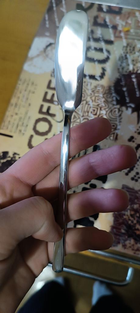 Il coltello da burro in acciaio inossidabile è molto comodo. Può essere utilizzato non solo per spalmare il burro su un pezzo, ma anche su qualsiasi paté, formaggio morbido. Penso che ogni casa dovrebbe averne uno. Lo consiglio.