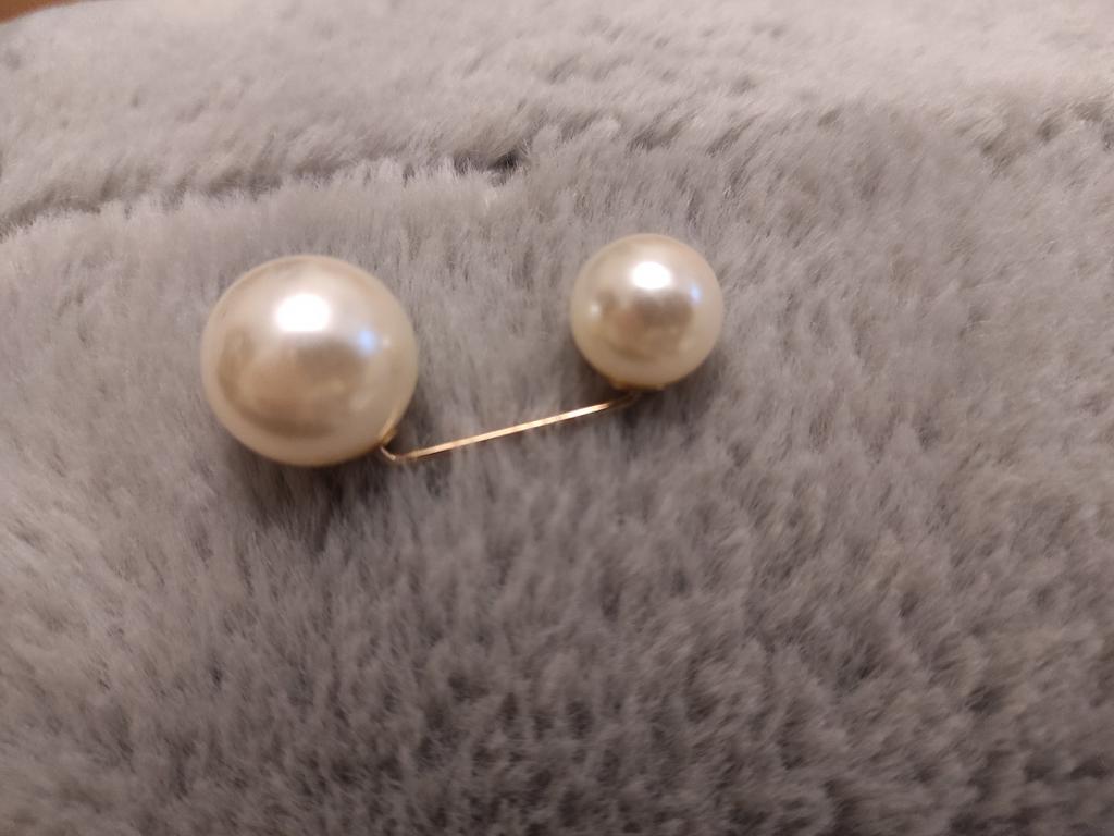 L'idea della spilla è buona, ma non tiene, la perlina cade. Appena l'ho messa, una è già caduta...