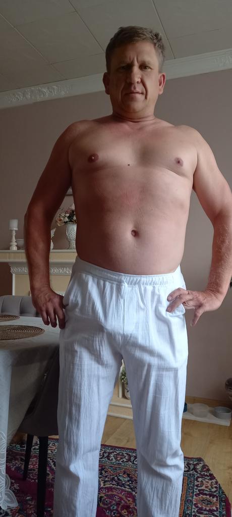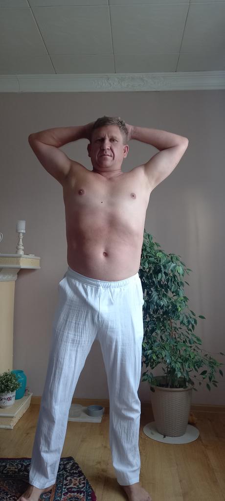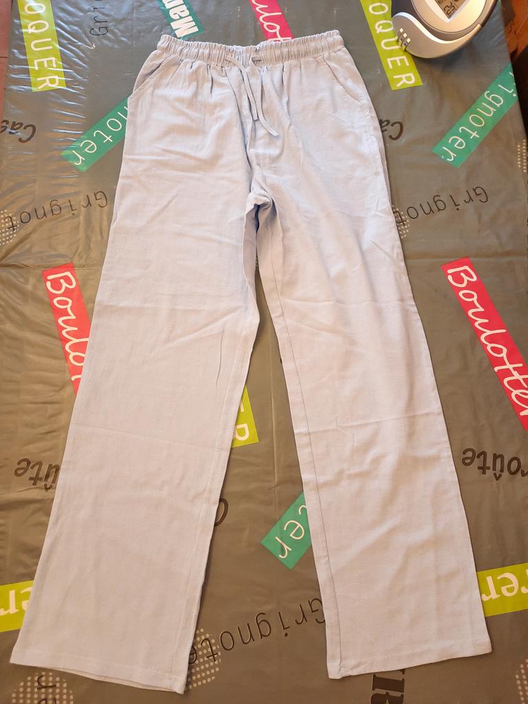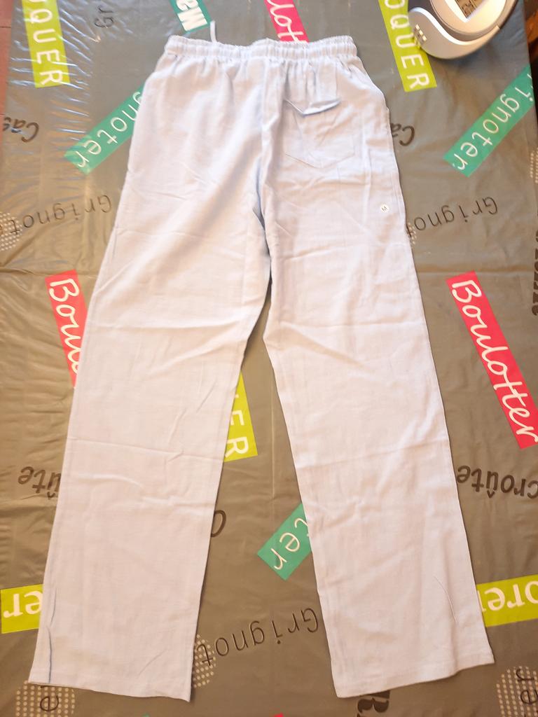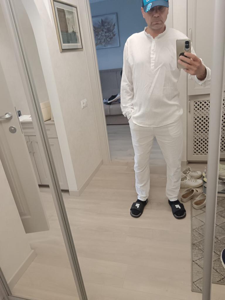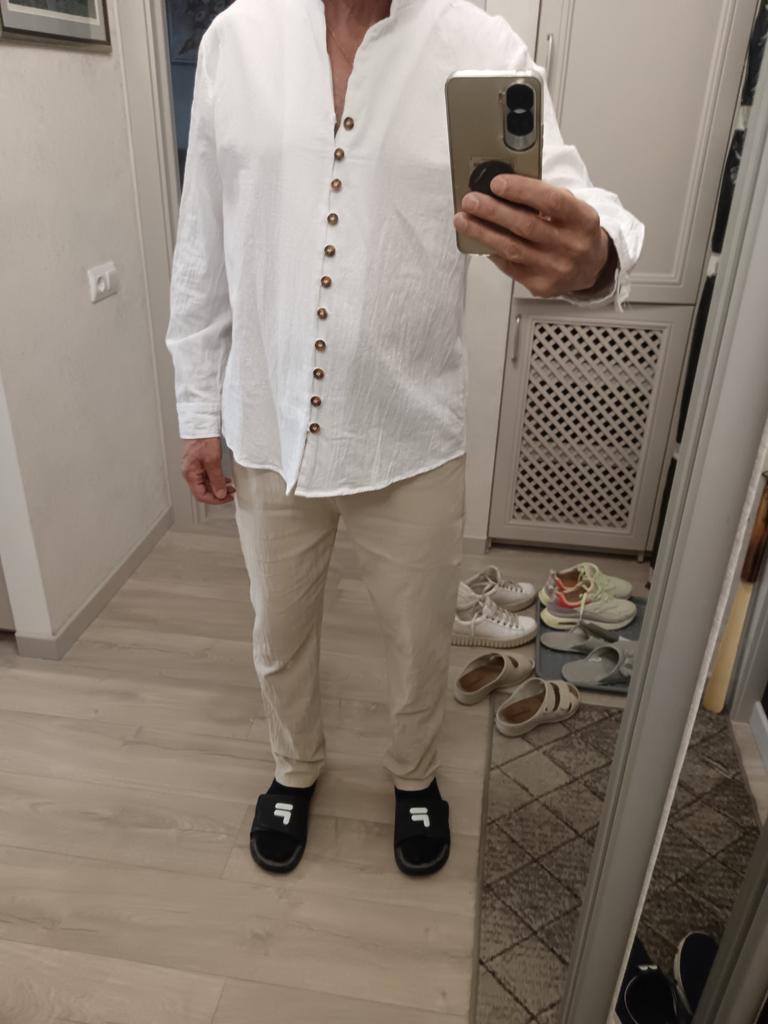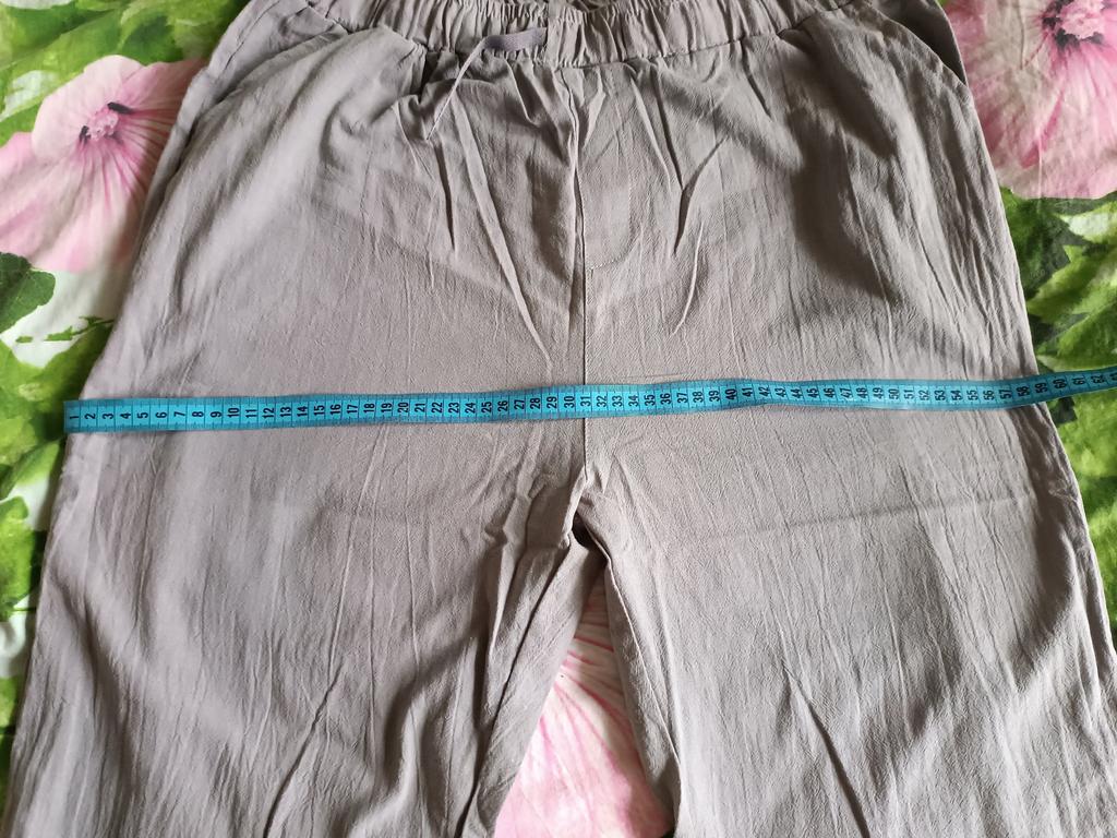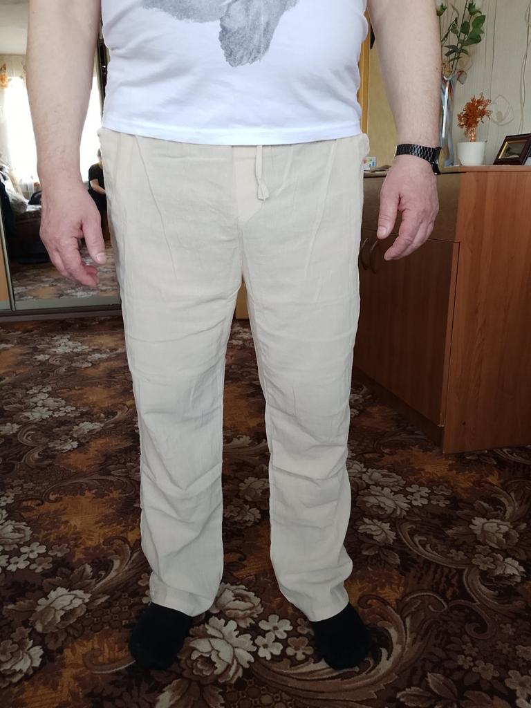 Pantaloni sottili di lino leggero. Corrisponde pienamente alla tabella delle taglie. I pantaloni non sono stretti, nemmeno larghi. Soddisfatto in pieno.
