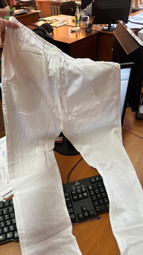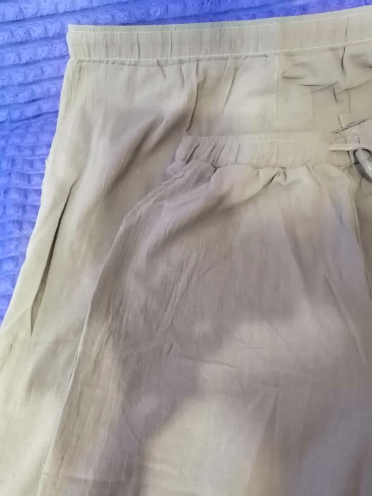 I pantaloni sono eccellenti. mietitrice Cotone. Sarà fantastico per l'estate. Le cuciture sono pulite, i fili non sporgono. Compratelo, non ve ne pentirete. Per 50 ho preso 2xl.