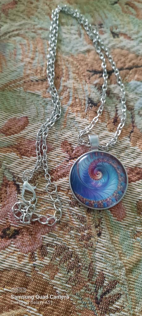 Collana di geometria sacra frattale a spirale di Fibonacci, gioielli di geometria sacra frattale a spirale di Fibonacci, ciondolo frattale a spirale di Fibonacci