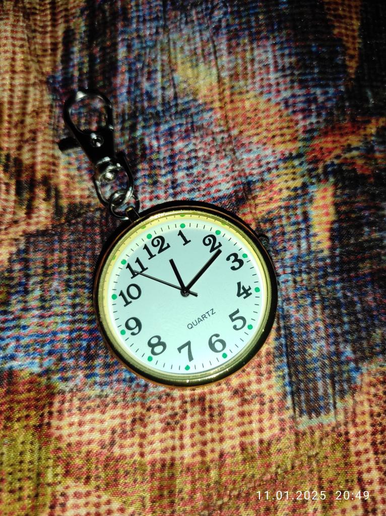 Grazioso orologio da tasca da agganciare al portachiavi. 👍💞 Il diametro è di 4 cm e la lunghezza totale è di 8,5 cm. 💐💝 Funziona perfettamente e mantiene l'ora esatta. ✌️🥰
