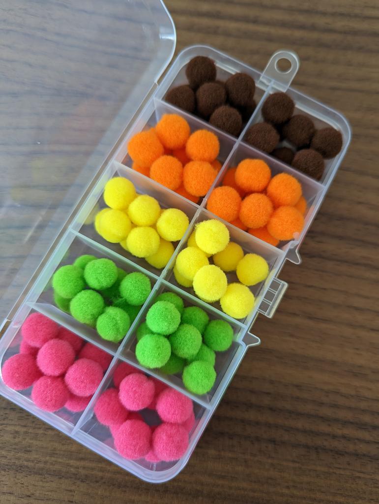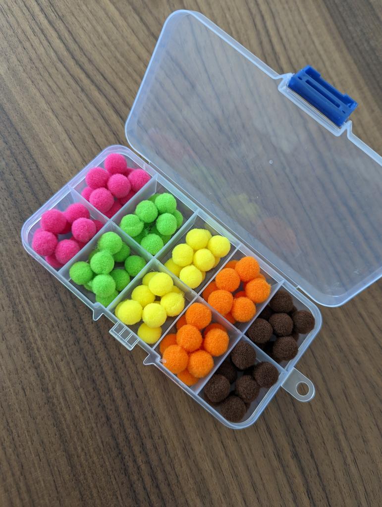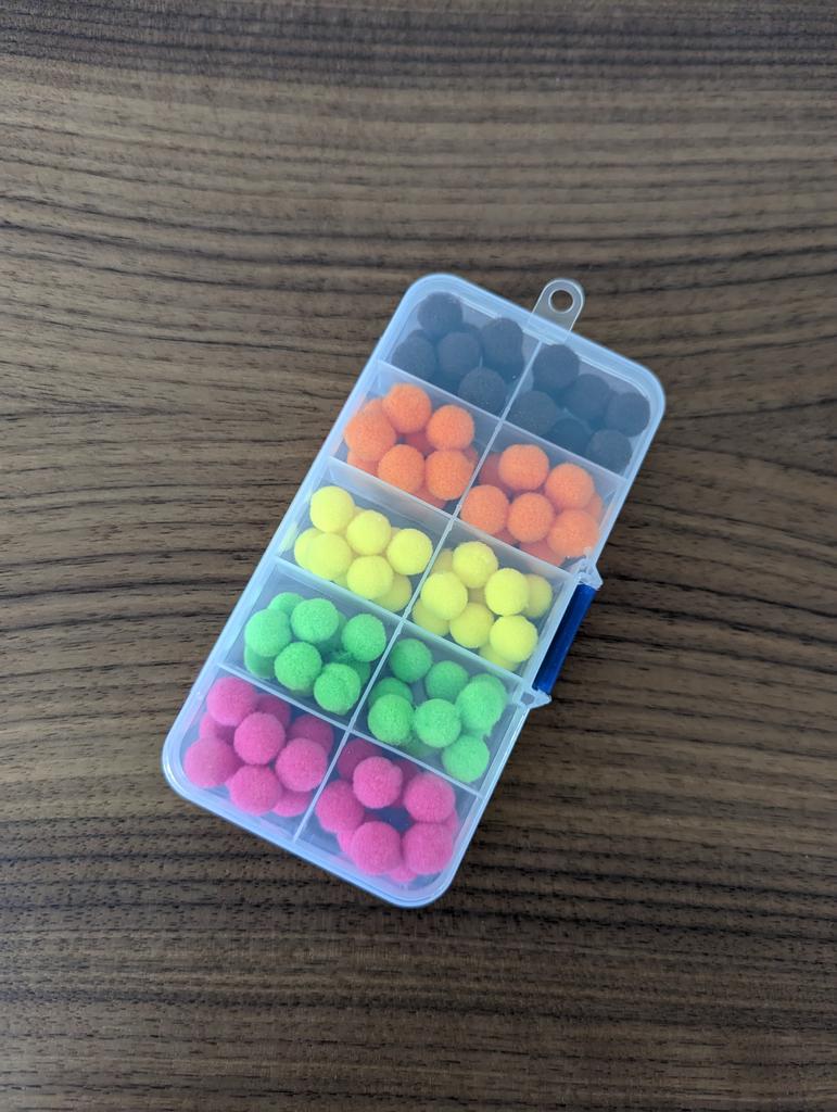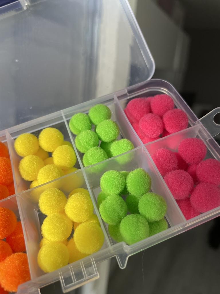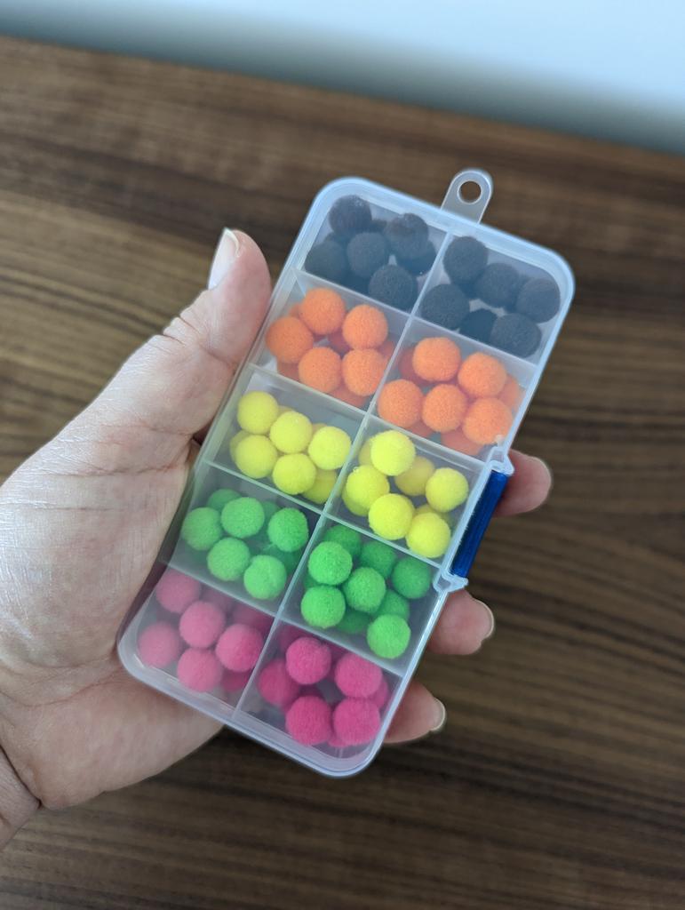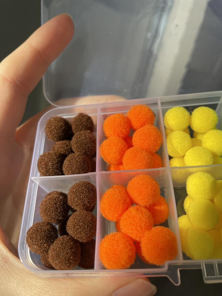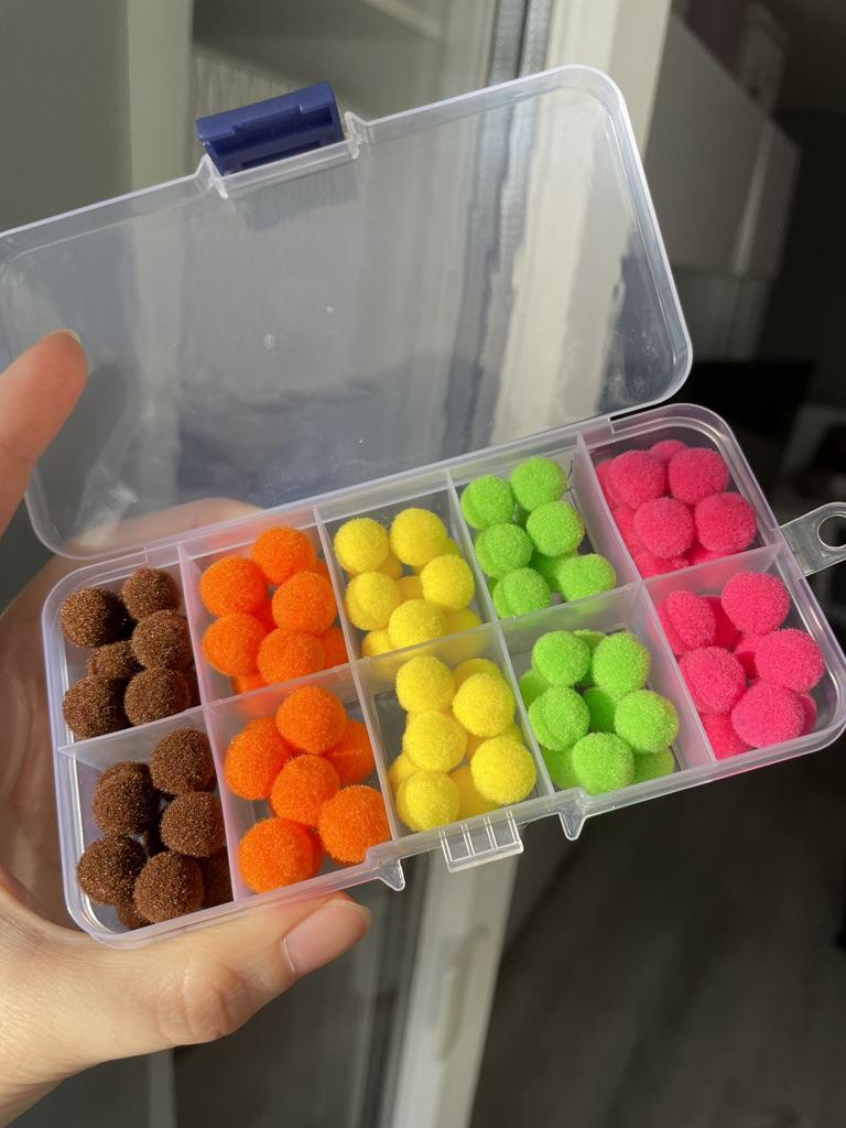 Questi materiali da costruzione non spinosi sono ottimi per la pesca! Usano fibre che non si agglomerano nell'acqua. Imitano le uova di pesce e quando sono in acqua sembrano molto naturali. Questa confezione viene fornita con 100 pezzi e sono mescolati con cinque colori diversi per una varietà ancora maggiore :) Questi sono ottimi per catturare pesci e non dover usare esche vive. Diametro: 8-10 mm Quantità: 100 pezzi
