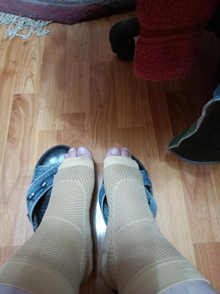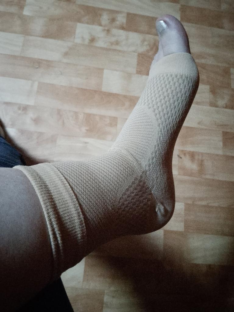 Adatto per una gamba di 27 cm. Più largo sullo stinco, più stretto verso le punte. La caviglia laterale esterna fa male. Spero che le calze sostengano e riducano il dolore. PSdifficile da indossare. Il dolore non diminuisce.