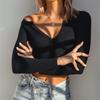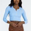 Spring Autumn Women Knit Skinny Casual Crop Tops Femme Vintage Front Buttons Slim Fit Pullover Chic T shirt