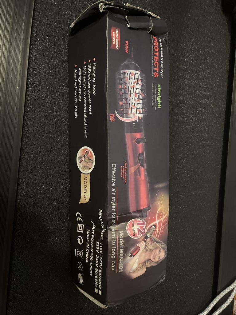 La spazzola ruota lentamente. La velocità del flusso d'aria è bassa.La sostituzione della spazzola non ha alcun meccanismo, è necessario forzarla, il che danneggerà l'asciugacapelli. Il pulsante di avvio del meccanismo di rotazione richiede molta pressione, da cui il dito si stanca. Non corrisponde esattamente alla descrizione.