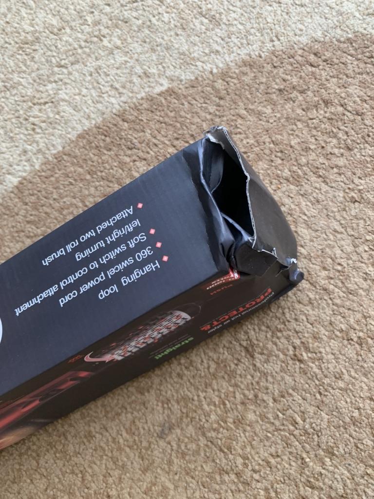 La scatola è molto ammaccata ma la spazzola è in buone condizioni e funziona bene