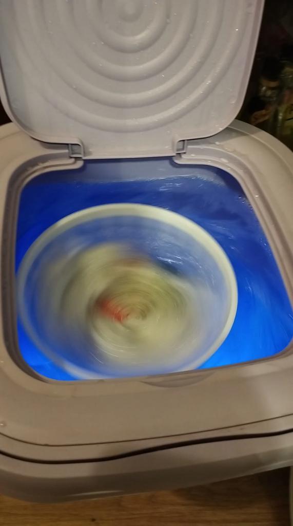Non è stato all'altezza delle mie aspettative. Non gira e la centrifuga vola via.... Come avete capito nel secondo video, la centrifuga è volata via e non potevo spegnere la macchina! Ho dovuto staccare la spina... Questo è un giocattolo per bambini - non tirerà più di una maglietta...