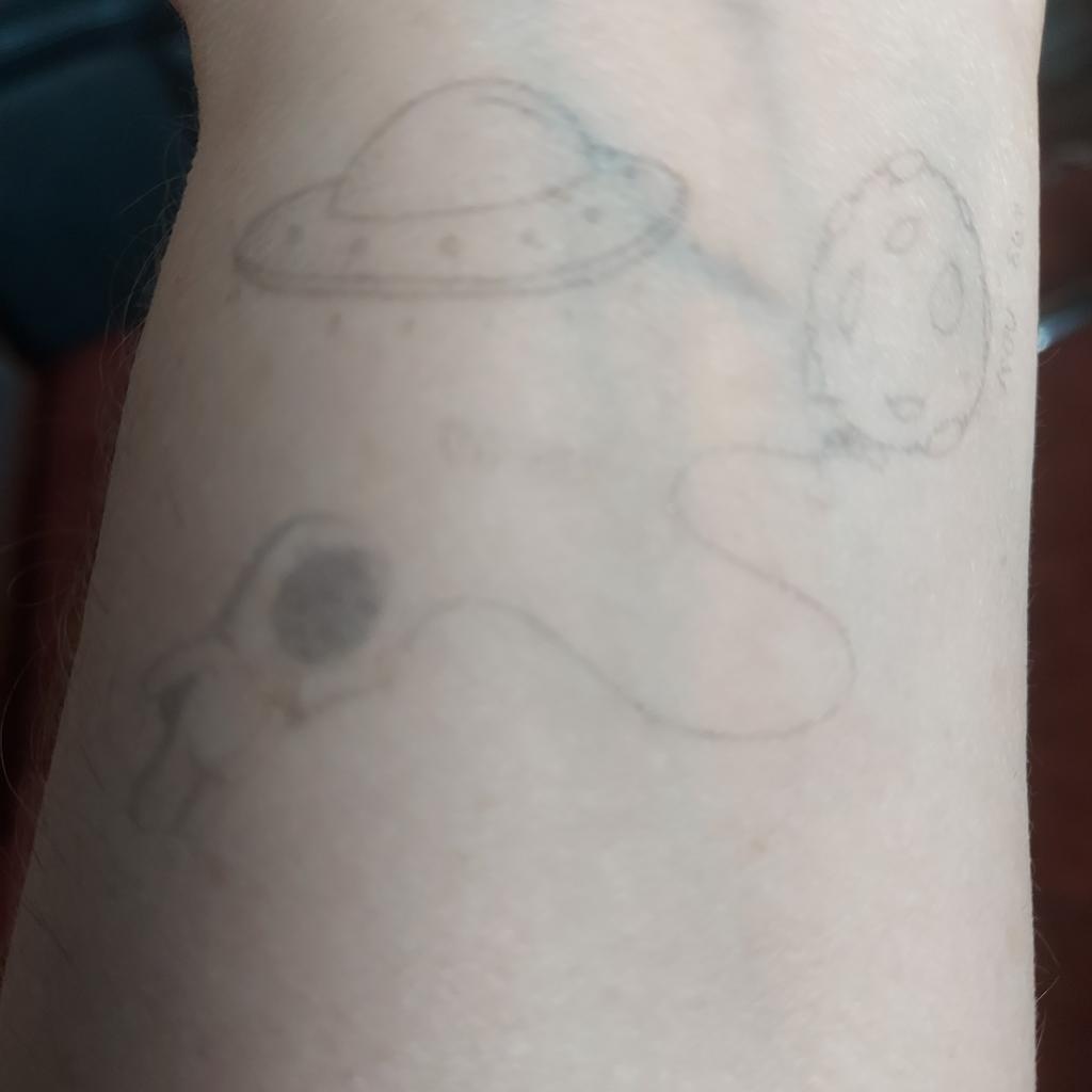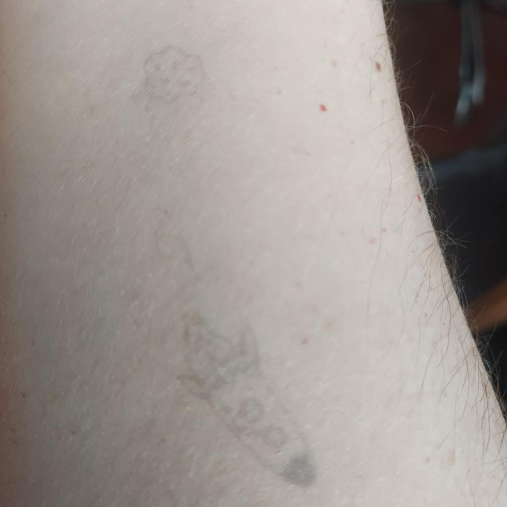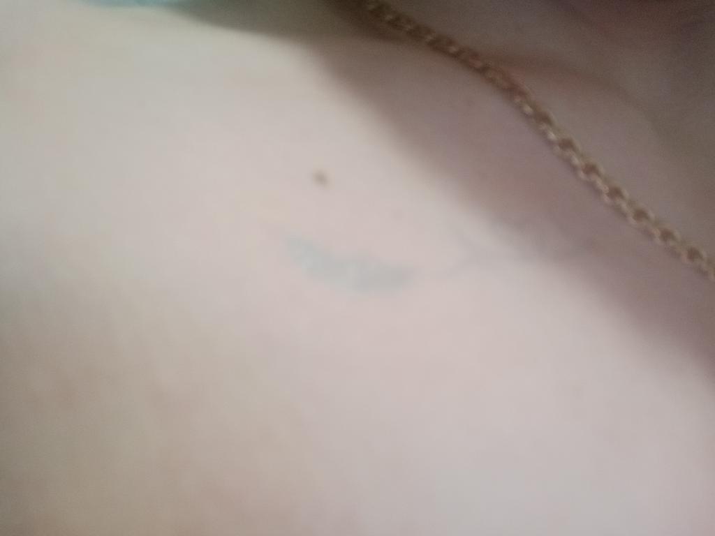 L'immagine è buona, ma molto sbiadita, non è affatto un tatuaggio. La seconda foto non è affatto visibile sul suo corpo (((