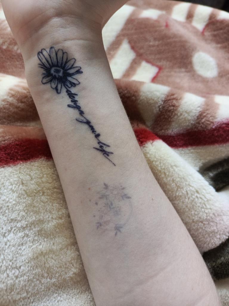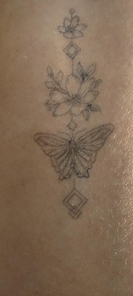 La farfalla è ancora visibile, ma la scritta è sbiadita, è semplicemente orribile.