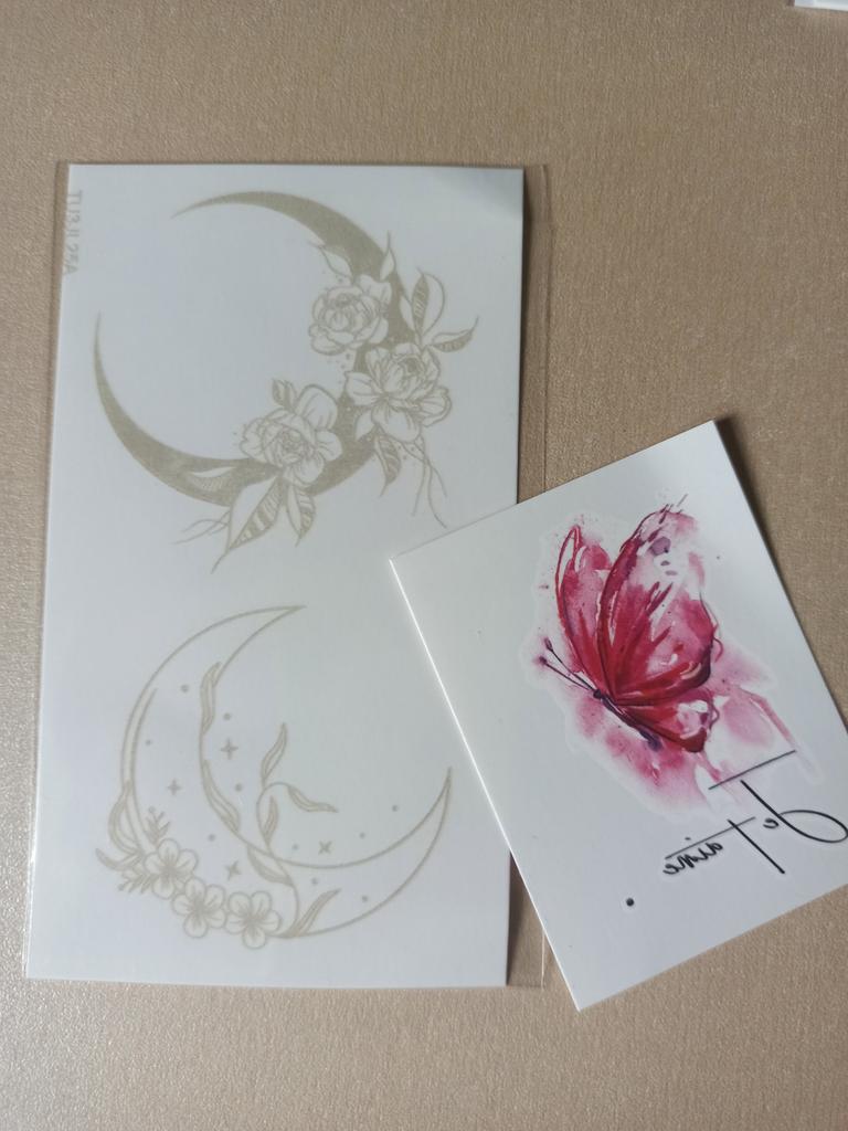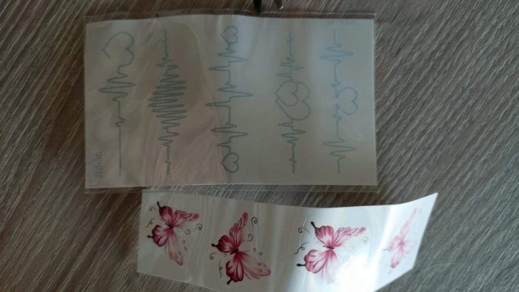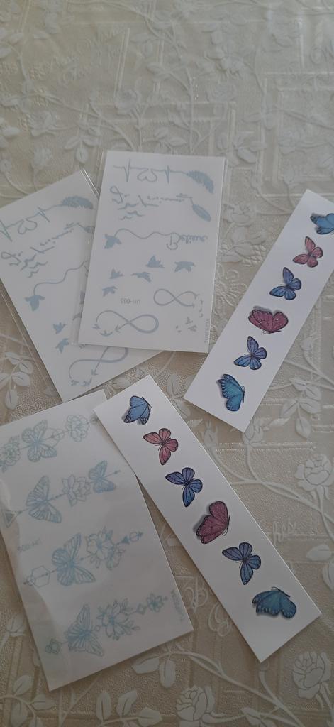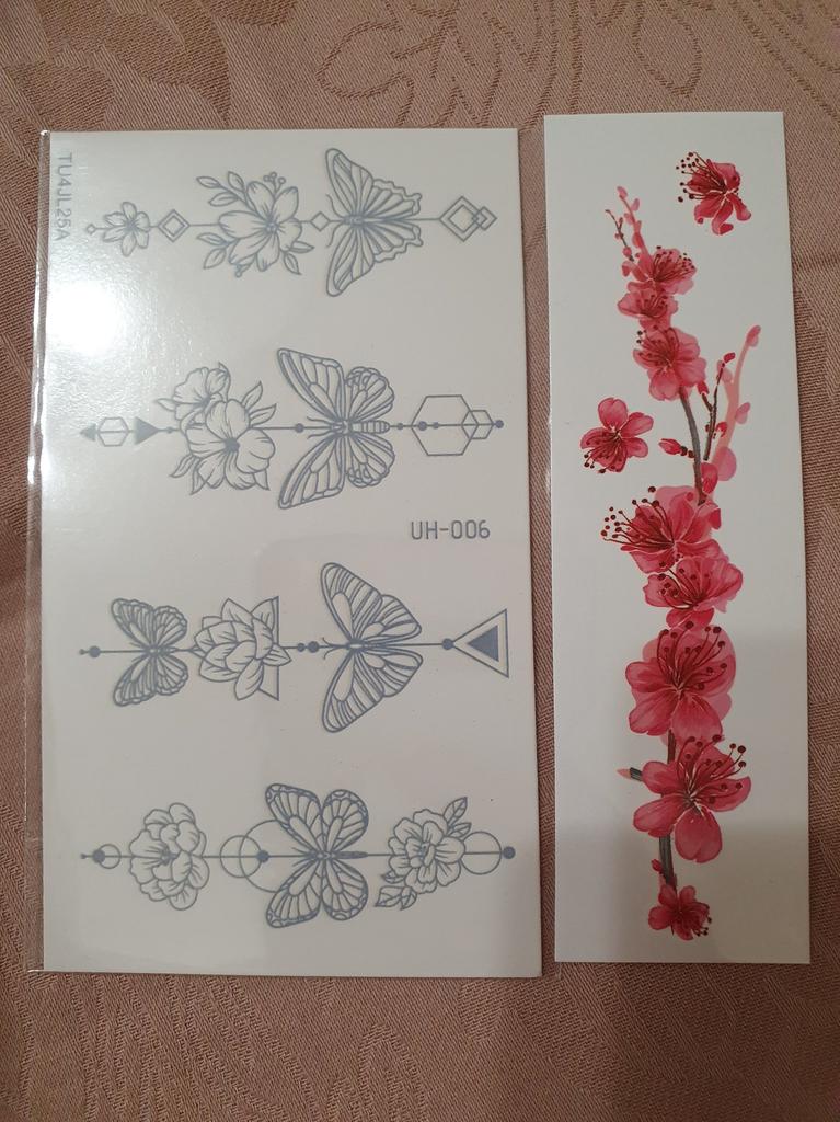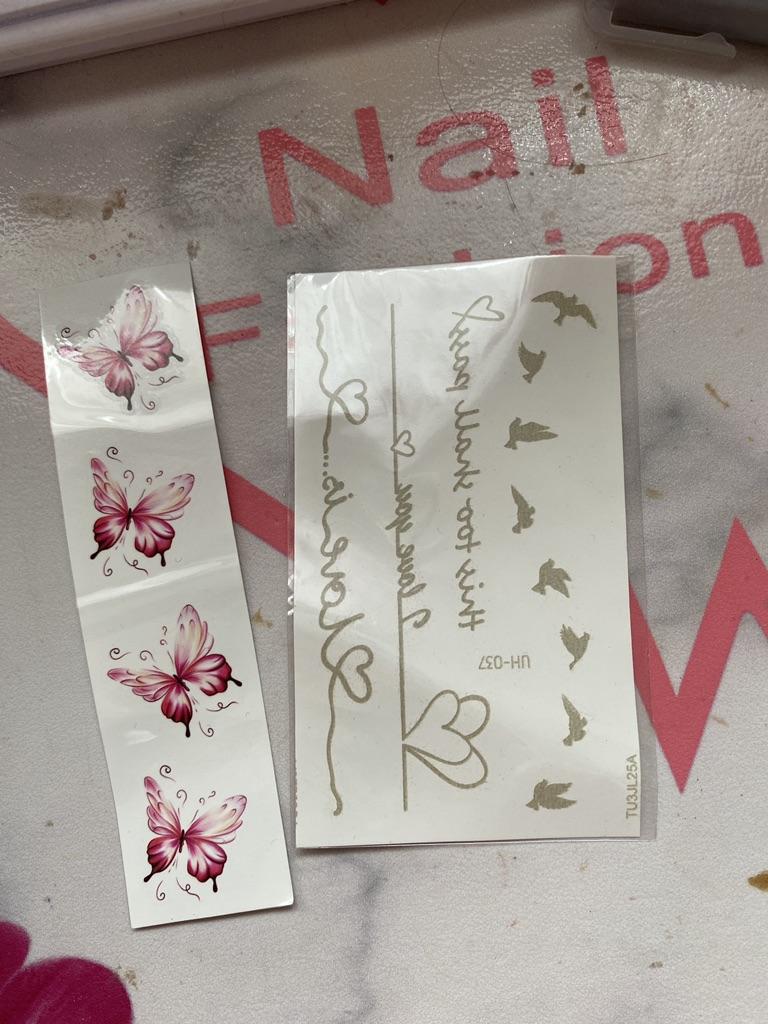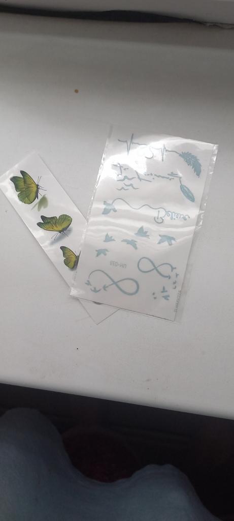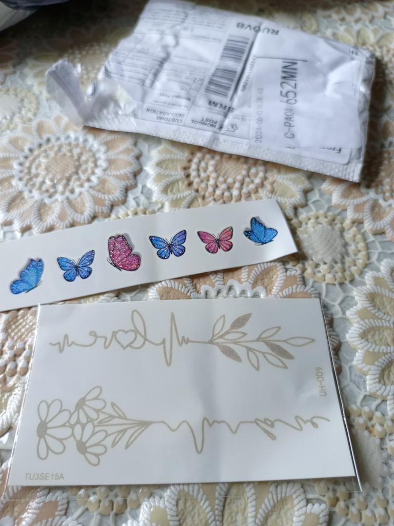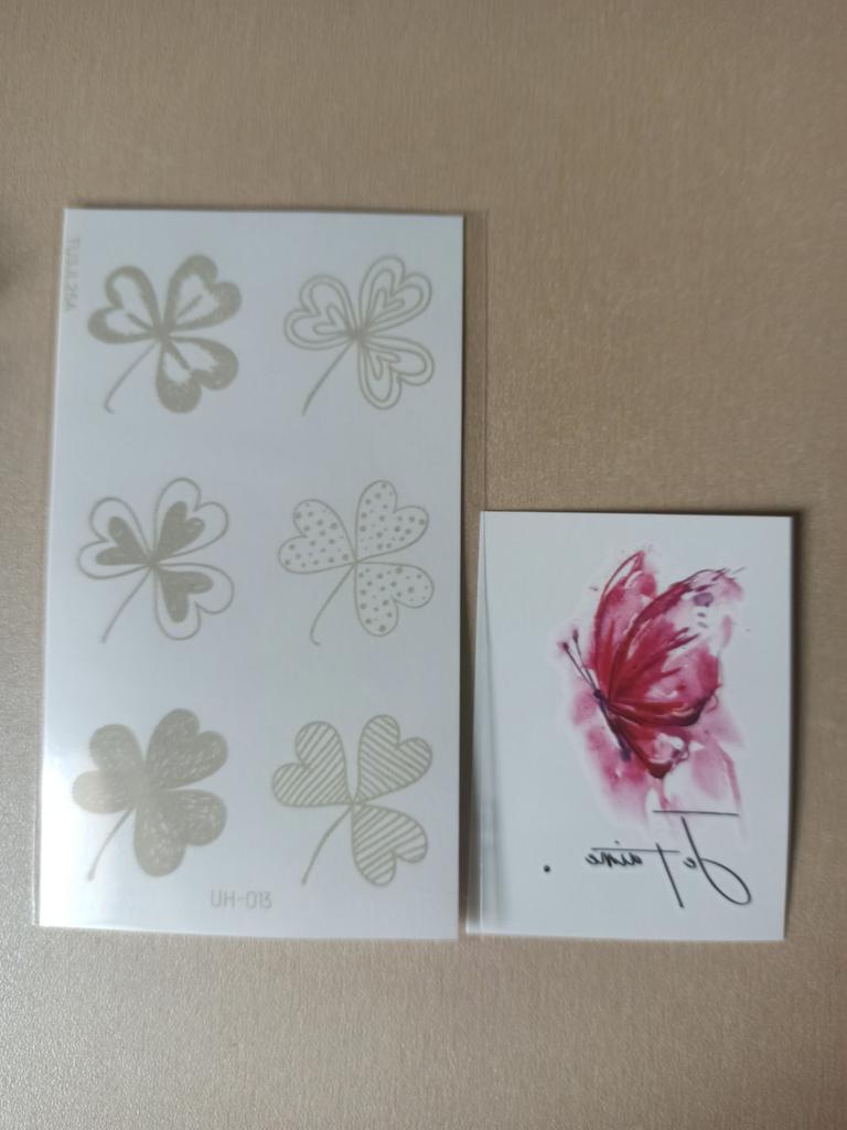 Bellissimi tatuaggi. Molto creativo. Molto vario. Gli adesivi con farfalla erano inclusi in regalo.