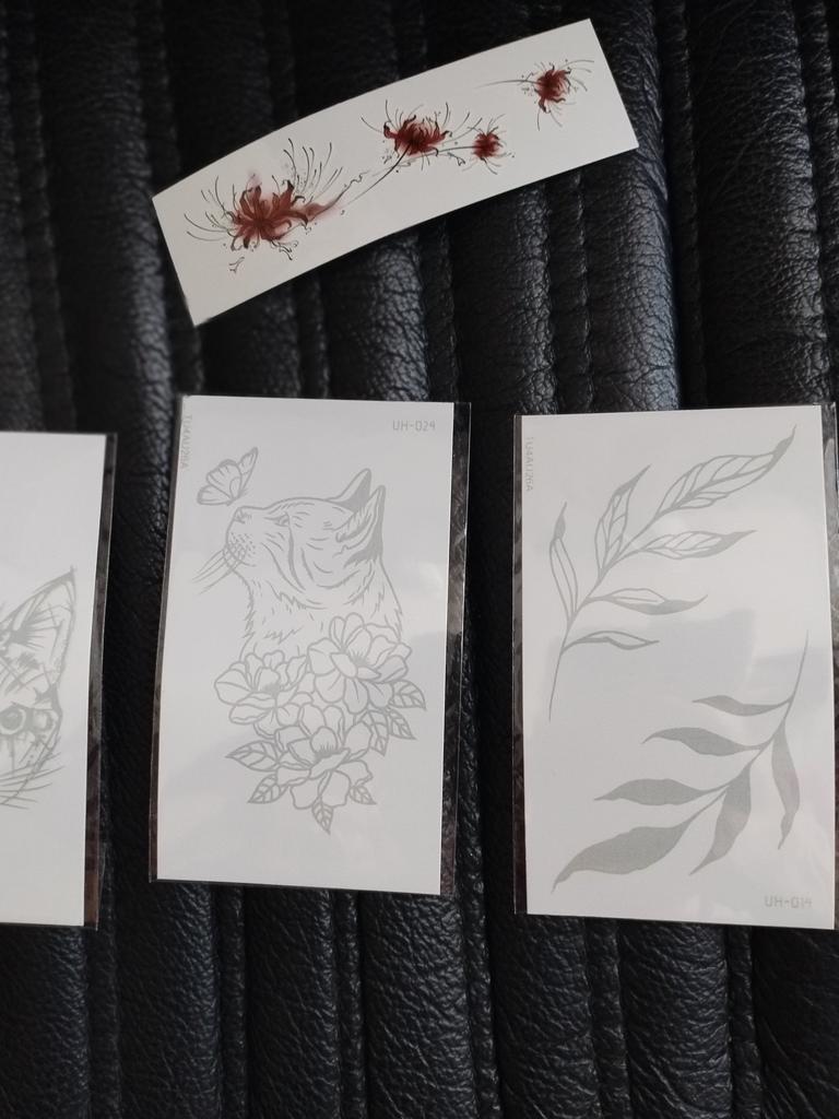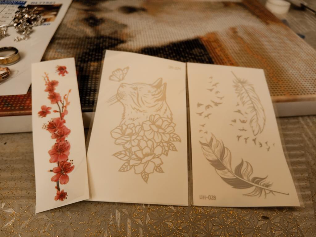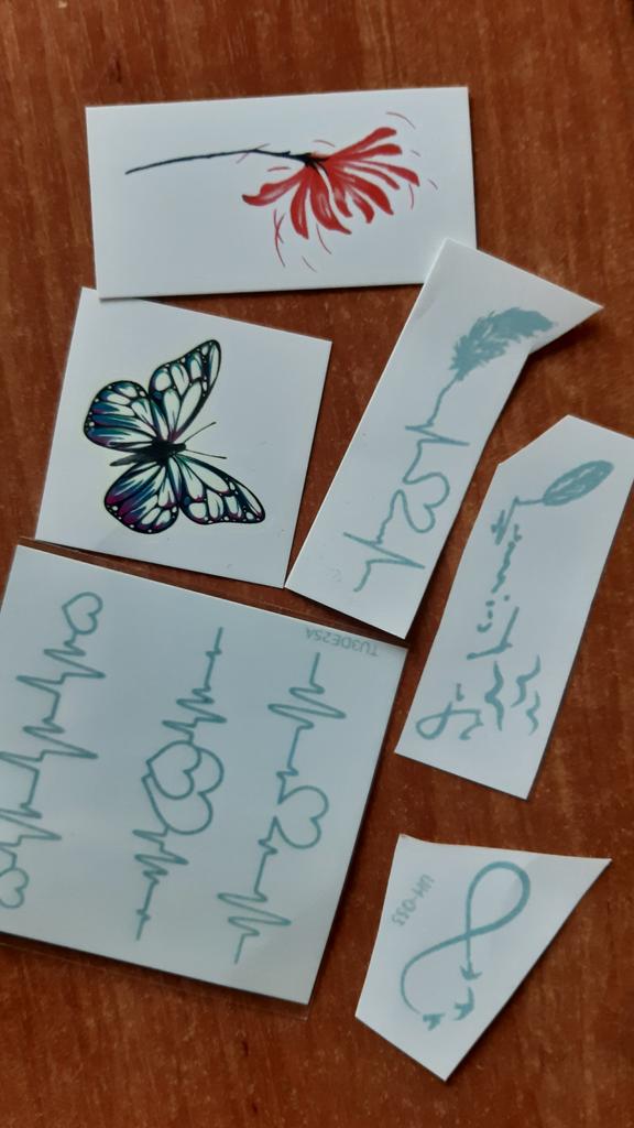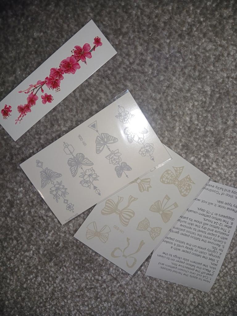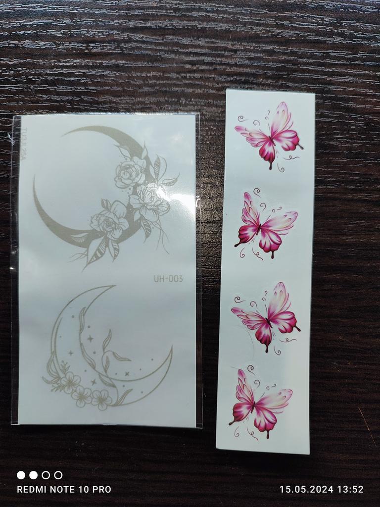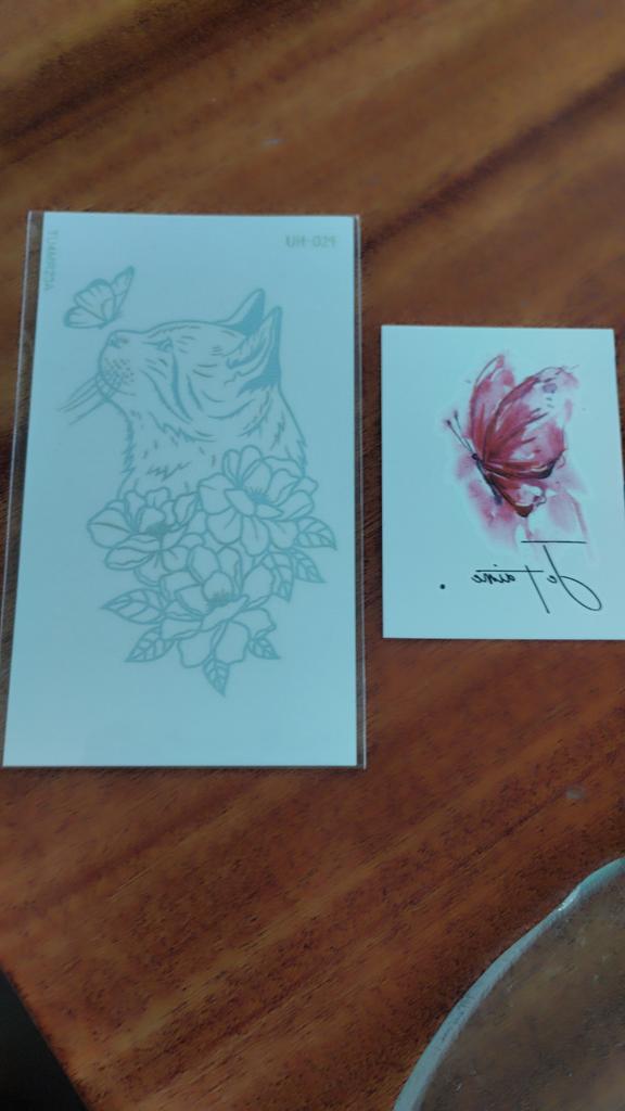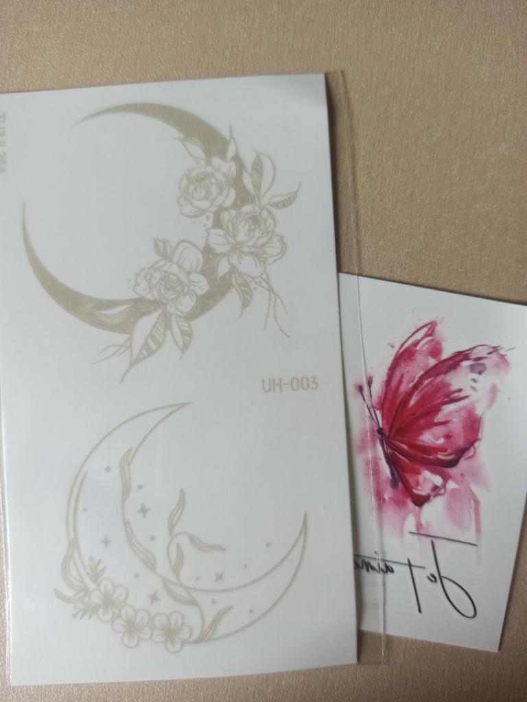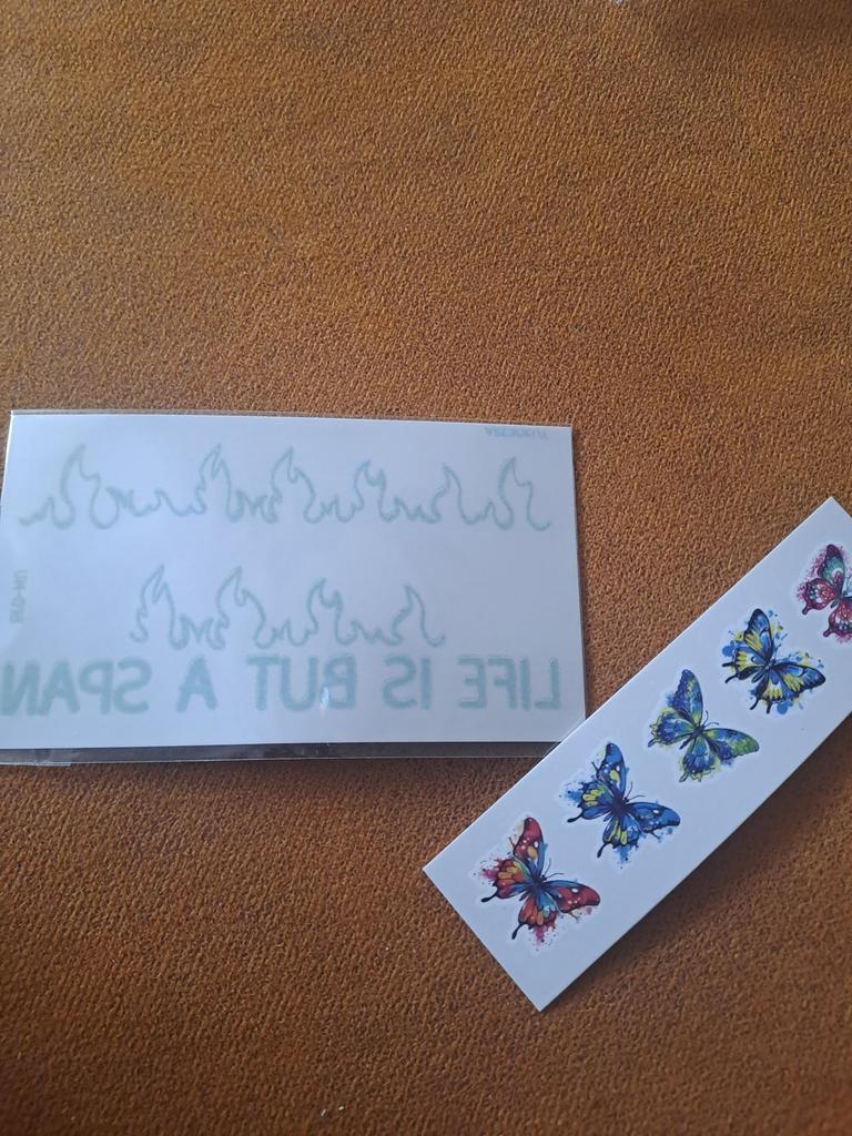 Bellissimi tatuaggi. Molto creativo. Molto vario. Gli adesivi con farfalla erano inclusi in regalo.