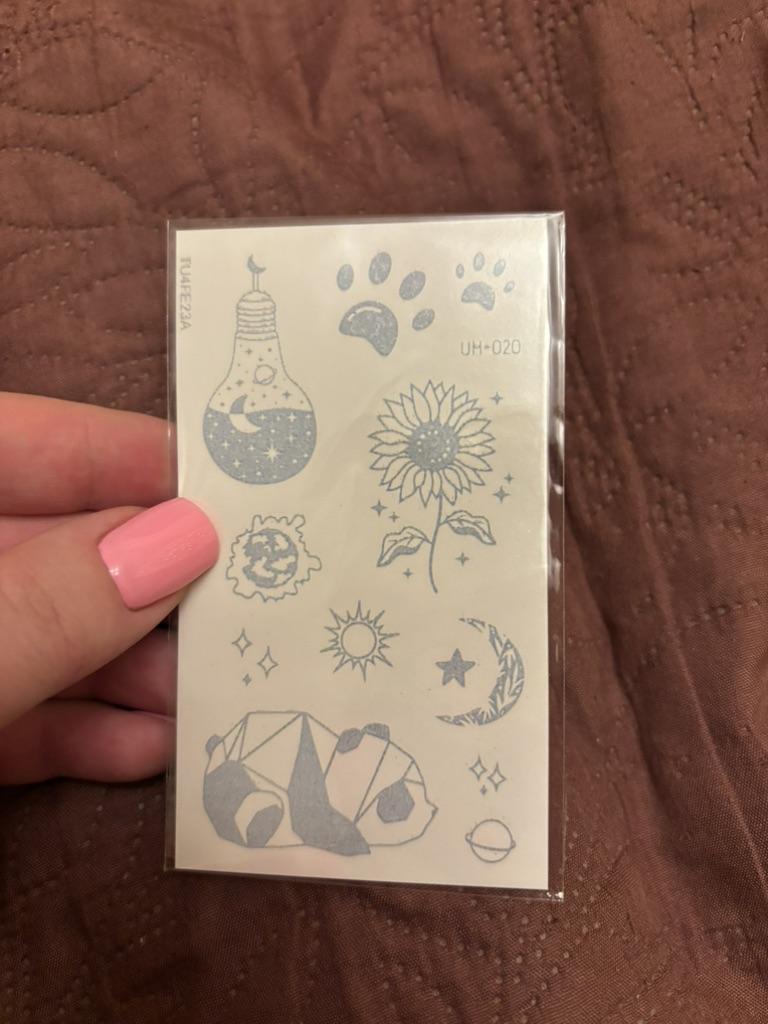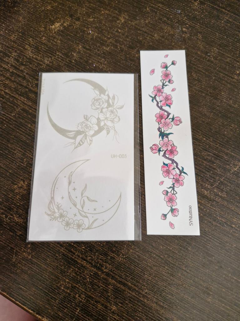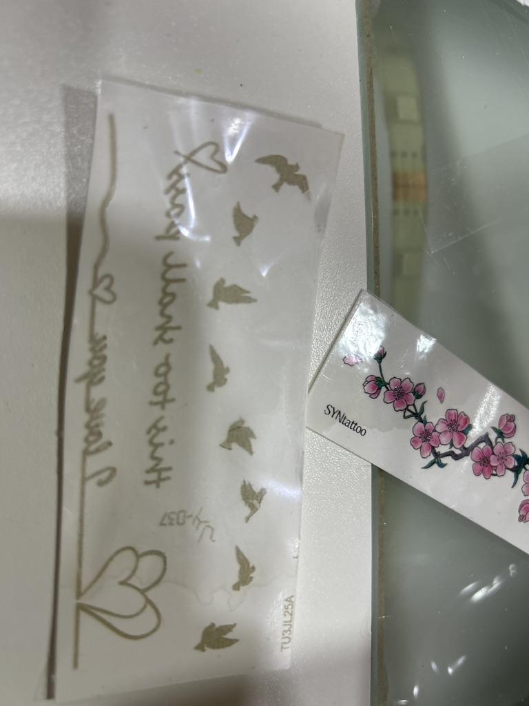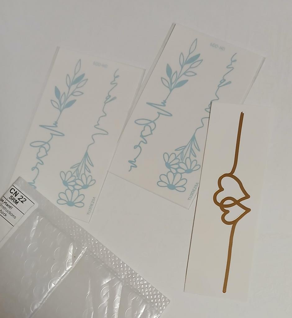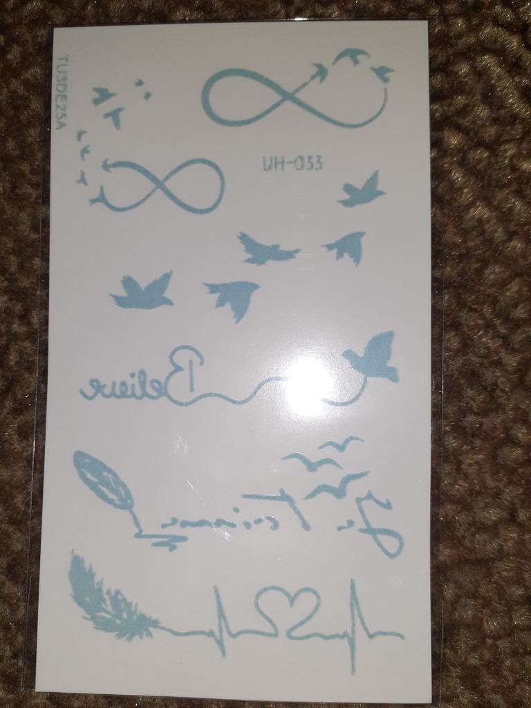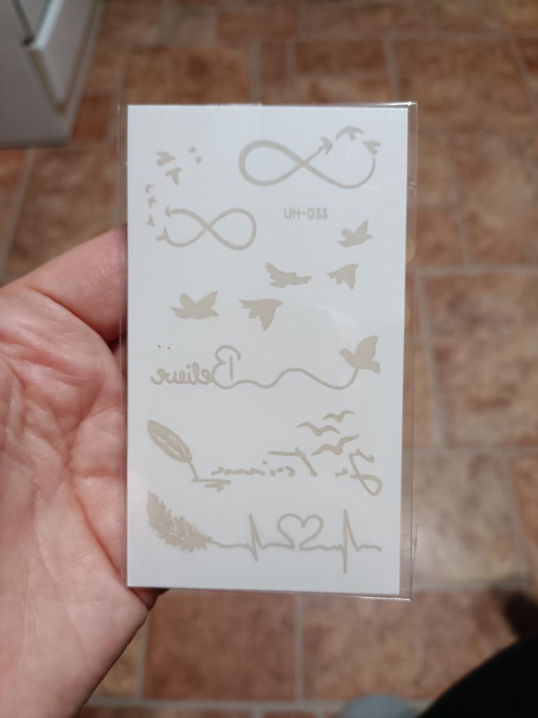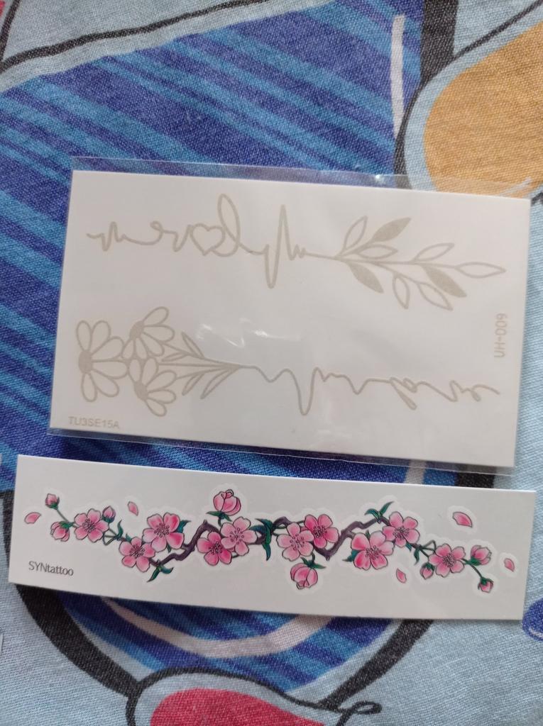 Bellissimi tatuaggi. Molto creativo. Molto vario. Gli adesivi con farfalla erano inclusi in regalo.
