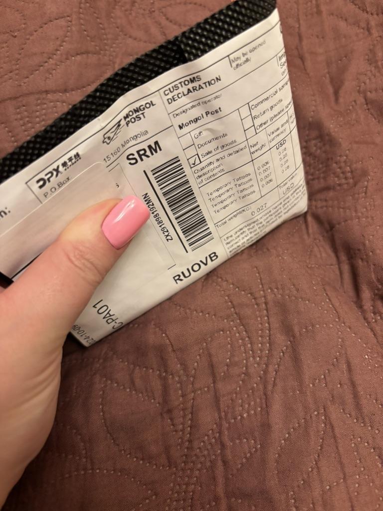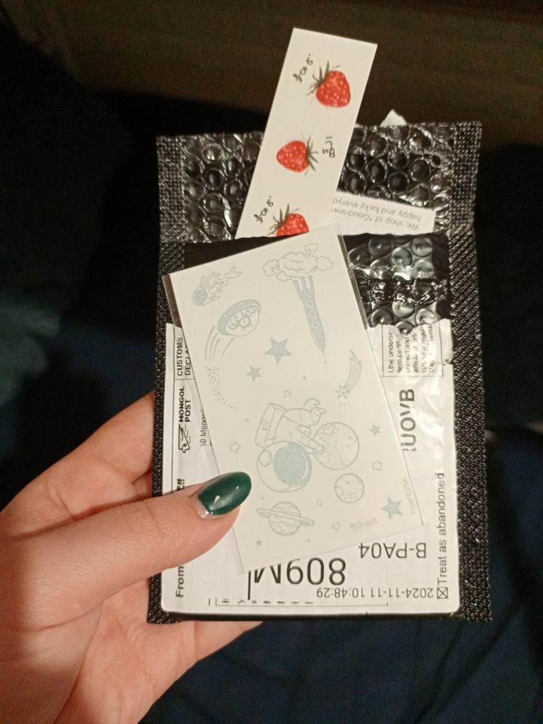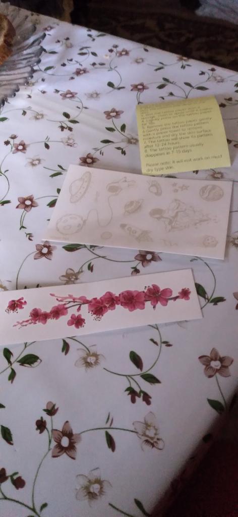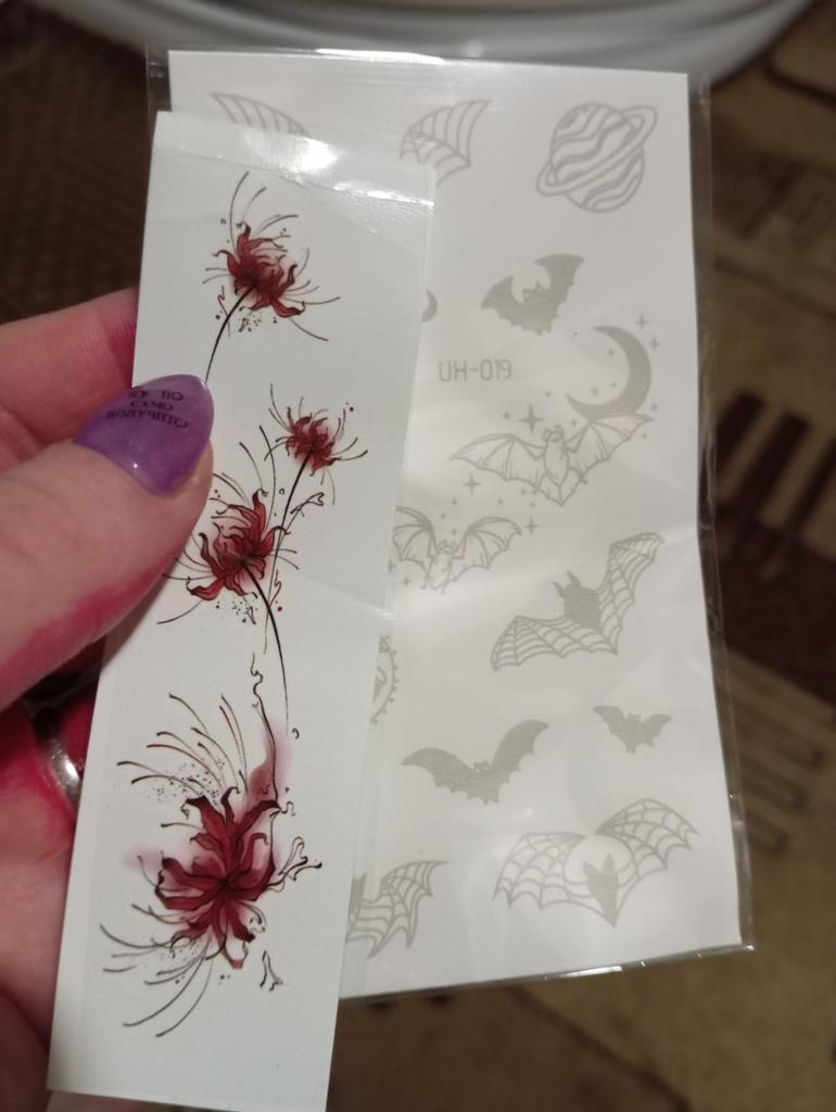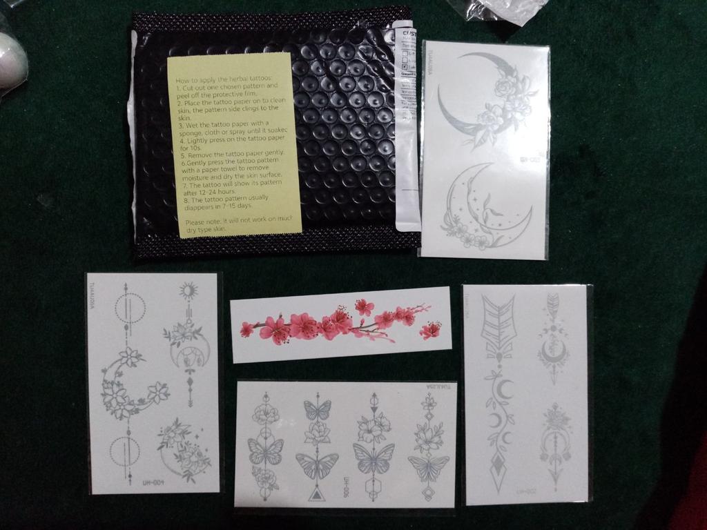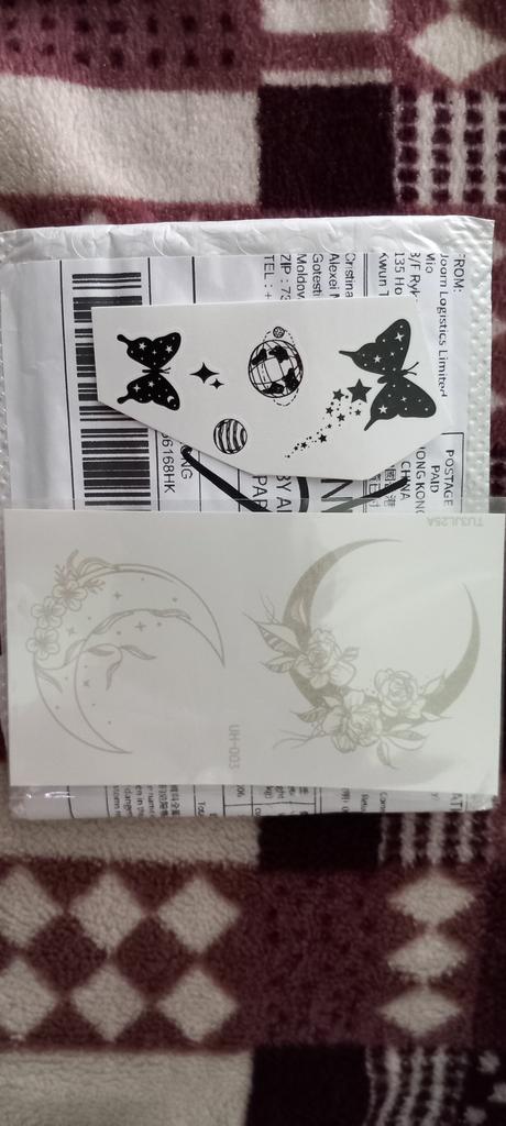Ho ricevuto l'ordine molto rapidamente: ci è voluto meno di un mese. È stato unito a un altro pacco. Finora ho provato a farmi un solo tatuaggio. Sono un po' deluso: il disegno è apparso molto sbiadito dopo un giorno, non sembrava affatto un tatuaggio. Ma non ho intenzione di arrendermi: continuerò a provarci. Hanno incluso come regalo delle foto trasferibili delle cicatrici.