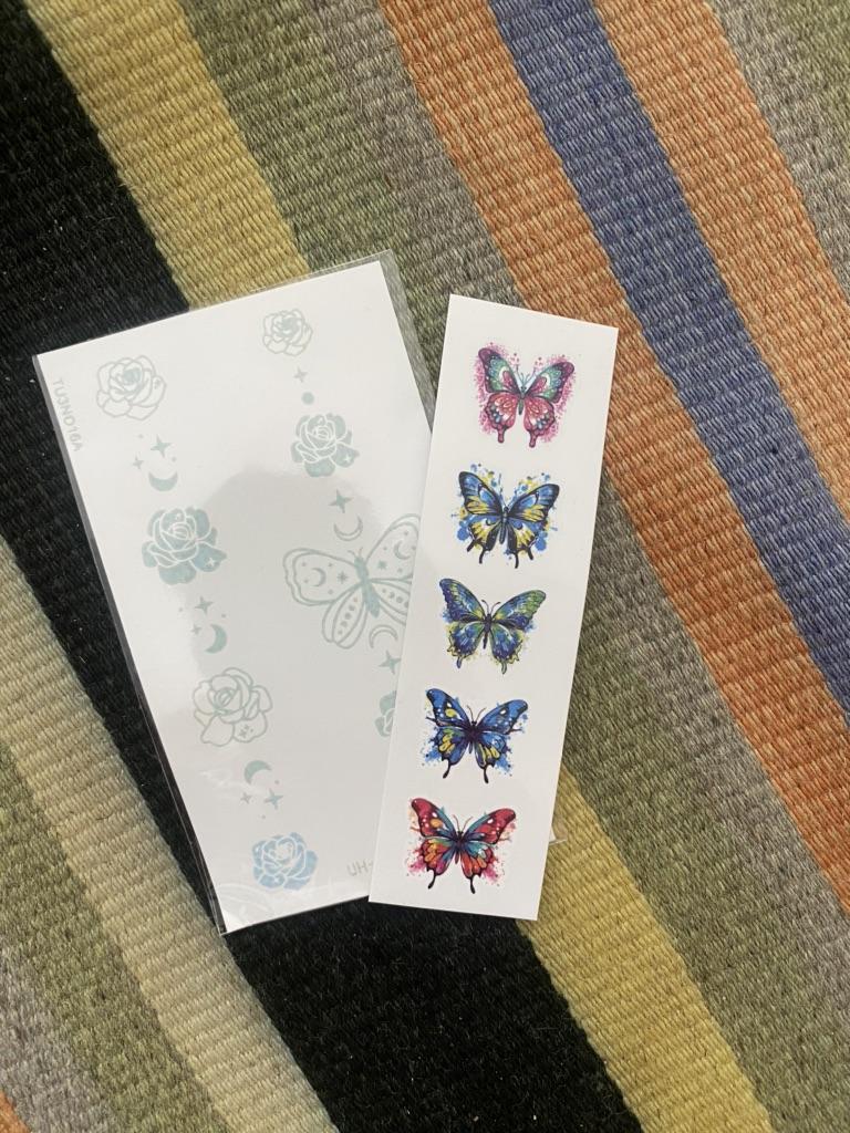 Abbiamo aggiunto delle farfalle in regalo. Non ho ancora provato il tatuaggio