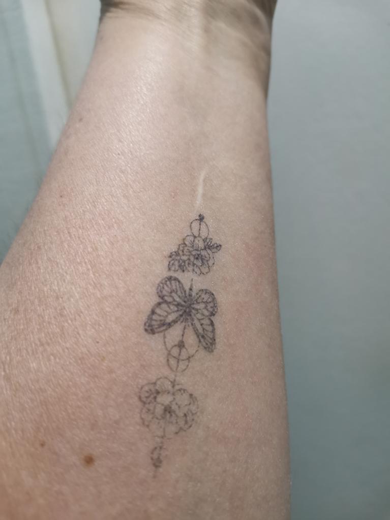 Tatushka carina. Hanno regalato anche una farfalla. Ragazze..... l'ho provato, la sera l'ho incollato, era quasi trasparente e al mattino il disegno era ben definito. Lo adoro. Super, è come una tatuatrice naturale. Dura ancora a lungo.